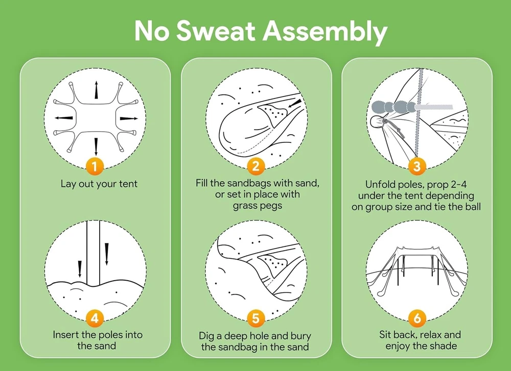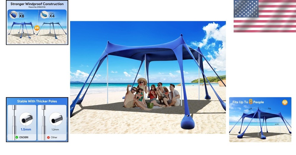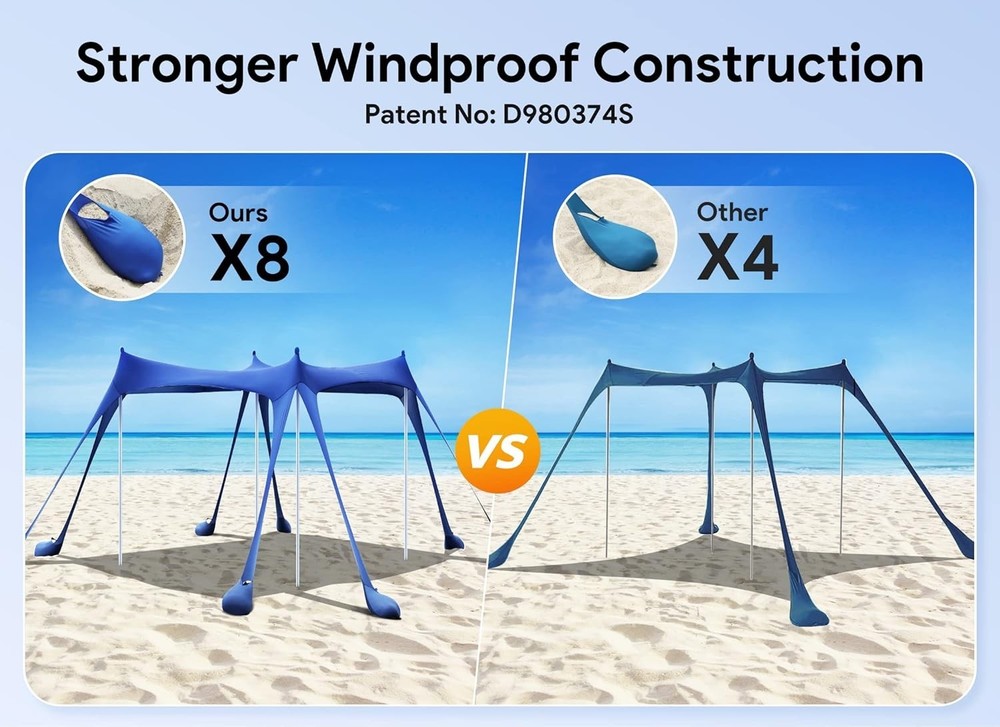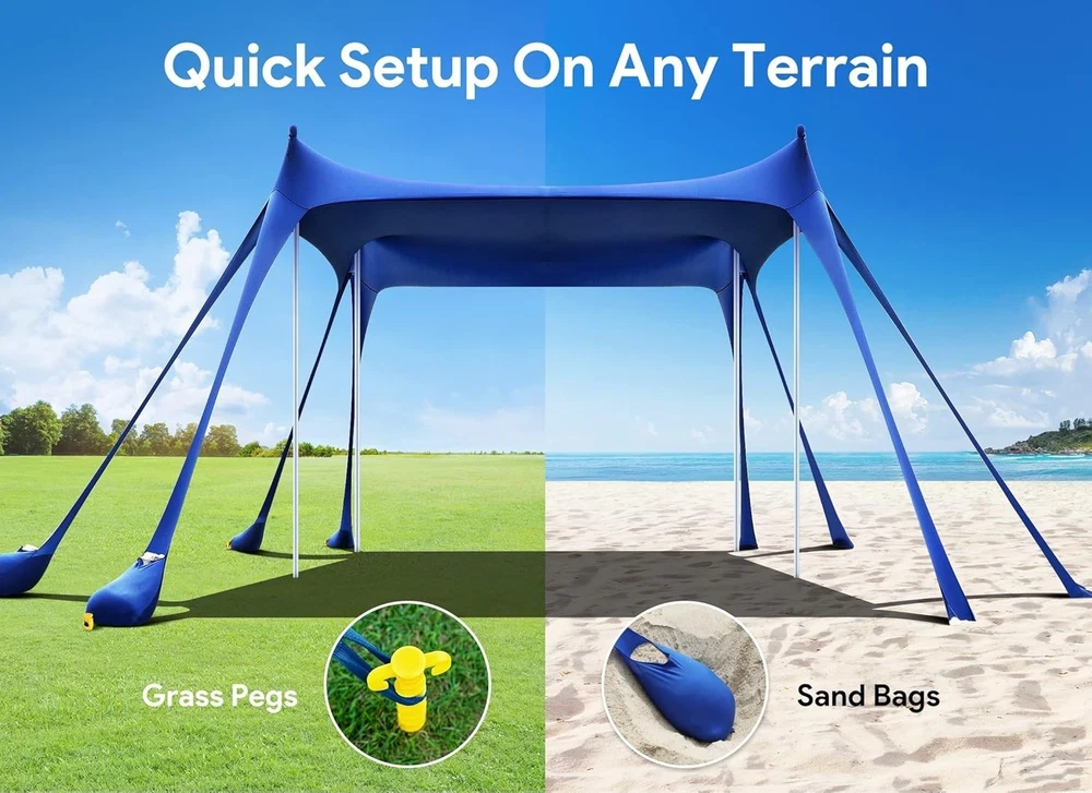 Beach Tent Sun Shelter with Sandbags & Poles ‹ › ‹ › ‹ › ‹ › ‹ › ‹ › ‹ › ‹ › ‹ › Beach Tent Sun Shelter with Sandbags & Poles -Large Size Beach Canopy -Shaded area reaches 10×10 ft, accommodating up to 8 people for beach parties or outdoor picnics. Features: Super Windproof Performance: Equipped with 8 upgraded larger sandbags (Patent NO: D980374S) and 4 thickened aluminum poles. 80% more stable than other beach tents on the market. Quick and Easy Setup: Set up by a single person in less than 5 minutes. Light and Portable: Weighs only 8 lbs, includes a long-lasting nylon travel bag. Reliable Sun Protection with UPF 50+ coverage, reducing more than 96% of harmful UV rays. Crafted from highly elastic Lycra fabric for ultimate comfort and durability. Benefits: Generously sized shaded area, great for gatherings and family outings. Stable structure ensures lasting comfort even on windy days. Easy to transport and set up for spontaneous outdoor adventures. Superior sun protection safeguards your family from sunburns. Perfect for beach trips, picnics, fishing, and other outdoor activities. Why choose our Beach Tent Sun Shelter? Elevate your outdoor experience with our Beach Tent Sun Shelter, designed for those who value comfort, stability, and sun protection. The expansive 10×10 ft shade can comfortably host up to 8 people, making it ideal for gatherings and adventures with friends and family. With patent-pending windproof features and easy setup, this tent provides unparalleled convenience and peace of mind. Don’t let the sun hold you back—enjoy worry-free time outdoors by securing your Beach Tent Sun Shelter today! Shipping Free & Fast Shipping - We offer free shipping to most of the USA with a normal delivery time of 3-10 business days. However, due to various situations, additional delivery time (up to 3 weeks) may be required for some items. Alternative Carriers - We may use alternative carriers (e.g. USPS, FedEx, UPS, etc.) to ensure your package arrives safely and on time. Due to the use of multiple carriers, we are unable to provide a tracking number automatically. Handling Time - Orders are processed and shipped within 1-5 business days of receiving cleared payment. Shipping Restrictions - Shipping to Alaska, Hawaii, Puerto Rico, Guam, and other US territories may incur shipping charges or delivery restrictions. Please contact us before ordering, or your order can be refunded/cancelled. State Restrictions - There may be restrictions based on your state of purchase. For example, certain items may not be shipped to California due to state regulations. Contact for Tracking Updates - If you require tracking updates or have any concerns about the delivery of your order, please feel free to contact us, and we will be happy to assist you. Return 30-Day Hassle-Free Returns - We want you to be completely satisfied with your purchase. If you are not, you can return the item within 30 days of receiving it for a full refund or exchange. Easy Return Process - To start a return, simply contact us and we will provide you with a prepaid return shipping label and detailed instructions. Restocking Fee - There are no restocking fees for returns. However, the buyer is responsible for return shipping costs if the return is not due to a seller's error. Refund Processing Time - Refunds will be processed within 5 business days of receiving the returned item in its condition. Payment We accept all major credit cards, PayPal, and Apple Pay for your convenience. Your payment information is secure and encrypted to ensure a safe and seamless transaction. Please complete your payment within 3 days of purchase to avoid any delays in shipping. Feedback Your feedback is extremely important to us. We strive to provide the best products and customer service possible. If you are satisfied with your purchase, please take a moment to leave us a positive review. If you have any concerns or issues with your order, please contact us before leaving negative feedback. We are committed to resolving any problems and ensuring your satisfaction. Contact Us If you have any questions or concerns, please feel free to out to our customer support team. You can contact us through the eBay messaging system. We are available Monday to Friday, 9:00 am to 5:00 pm EST, and we will do our best to respond to your inquiry within 24 hours. Buy it now and enjoy a pleasant shopping experience! Unit Quantity: 1 Features: Lightweight,Portable,Waterproof,Super Windproof Performance,Quick and Easy Setup,Reliable Sun Protection,Large Size Beach Canopy Material: Lycra,Lycra Fabric Type: Beach Tent Capacity: 8 Person Number of Windows: 0 Number of Doors: 0 Number of Seasons: General Use Shape: Square Color: Deep Blue Size: L Waterproof Rating: More Than 10000 mm Weight: 8 lb