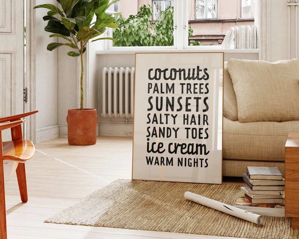 Beach Theme Wall Art Funny Beach Decor Print Beach Home Decor Living Room Wall Art Printable Material: Premium luster photo paper Print type: Inkjet printing One side printed + The finish provides the highest possible resolution and color saturation + Lasts up to 200 years in color and 400 years in black-and-white + Printed on high-quality resin-coated photo base paper medium + Posters can be hung with double-sided tape, tacks, or framed + Hand washing with a gentle cry cloth is recommended for extended durability I will hand select the best choice of paper for your chosen design to ensure top quality results for a beautiful, bright and luxurious print. All prints are sealed in cellophane slips for protection during transportation, and are shipped in a protective cardboard envelope.