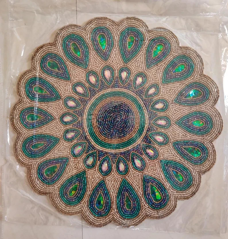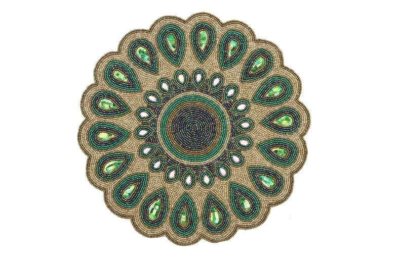 Country of Origin: India Occasion: Anniversary, Birthday, Christmas, Engagement, Multipurpose, Wedding Material: Glass Color: Multicolor Pattern: Mandala Theme: Peacock Shape: Round Type: Placemat Brand: Handmade Features: Beaded Number of Items in Set: 2