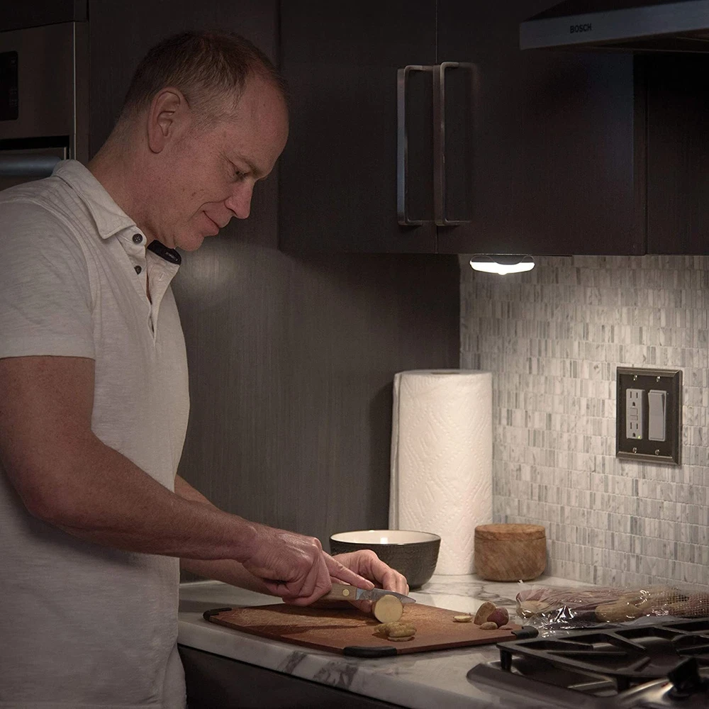 Mr. Beams Wireless LED Puck Light provides convenient hands-free light around the home. The battery-operated puck light’s intentional design includes Mr. Beams signature features, including motion activation, auto shut off, easy installation and long battery life. Its unique diffuser creates a balanced light pattern, making it the perfect under cabinet light for kitchen counters, cupboards, closets, shelves and any other workspace in the home. Battery-operated LED puck light provides 30 lumens of bright white light, perfect for under cabinets, cupboards and shelves. Motion and light sensors ensure the light is only activated when motion is detected in the dark. Auto shut off after 20 seconds of no motion helps prolong battery life. Easy, wireless installation takes less than 5 minutes with the included mounting hardware or double-sided adhesive. The puck light’s intuitive bracket design allows for easy mounting and battery . Designed to get approximately year of light on each set of batteries (not included) with average use of 8 activations a night. The LED puck light’s unique diffuser provides a pleasing and balance light pattern, perfect to light kitchen counters, cupboards, closets and shelves.