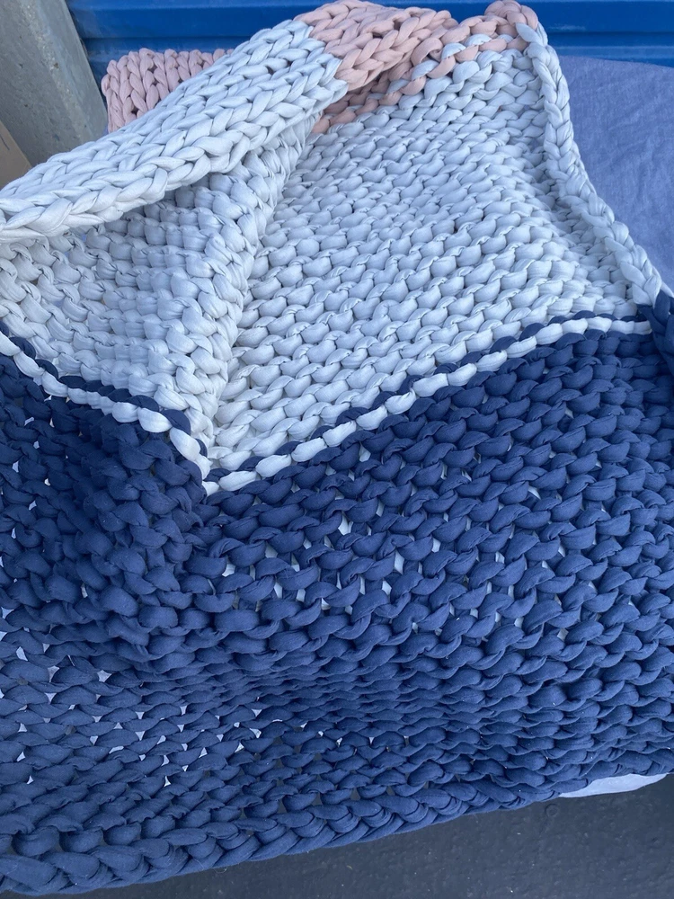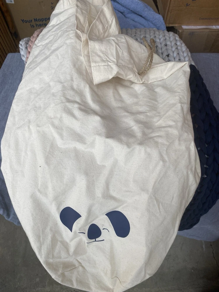 Brand new with tags 8 lb weighted cotton Nappling no longer available in 8 lbs threw bearaby color is confetti a mixture of white, pink, blue and gray Measurements are 40 wide side to side 57 high top to bottom comes with dust bag Track Page Views With Auctiva's Counter