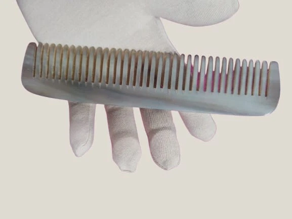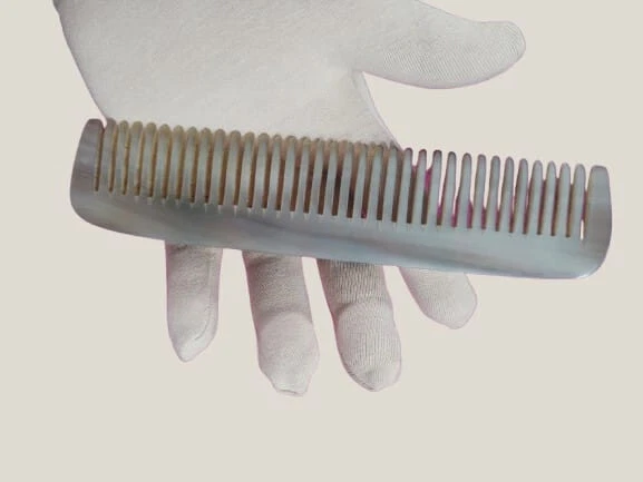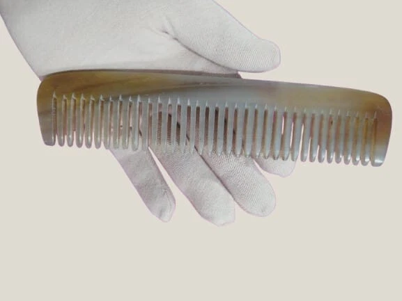 Hair comb handmade from natural buffalo horn. Carefully crafted, polished by craftsmen with high skills. 100% natural material, no chemicals used, safe for skin and eco-friendly. Handmade from high quality horn to relax your feeling, natural material ideal for treated and sensitive hair. Strong and durable for long term use. Country of origin: USA Material: + High quality natural buffalo horn Care instruction: + Store in clean and dry place + Hand washing is recommended, do not soak the comb + Avoid chemical and hot sources. Thanks and best regards! *WAIT A MINUTE: Please read simple methods below to identify a product is made of horn or plastic? - Sinking test: The buffalo horn product is denser than water, so it will sink if put in water. It means if it float, it must not from horn. And if you leave buffalo horn product in water for few days, it will be floppy and damages. - Burning test: Genuine buffalo horn not easy to burn, it turns to ash after burning and smelled like barbecue or burning human hair. Why? Because buffalo horn is keratin, the same as human hair and human nail. Plastic melting when burning it, and you will find a terrible burning plastic smell. - Static test: Plastic produces static by friction, and the genuine horn doesn’t. We can make an experiment by using the horn item and some tiny paper pieces. - Inspecting test: Making a horn item need many handcrafted processes. Not like plastic products are produced by assembly line without humans’ hand, every single horn product is unique, including the shapes, patterns and textures, natural scratches, cracks and even small errors in handcrafted produces. We can watch and compare two of the same product to find out the differences if they are genuine horn item. - Smelling test: Dip some water on a finger and use the finger to rub the horn product surface quickly, then a smell of burned hair or feather will come out. This is because of the similar composition between the horn and hair/feather as above. Fake horn have no such smell. - If you still not sure, you can send it to laboratory test.