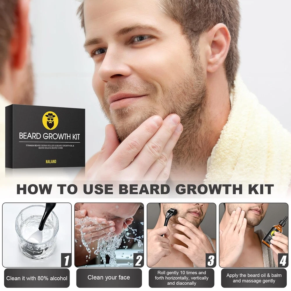 Store New Arrivals Add to Favorite View Feedback Beard Growth Kit - Beard Kit for Men with Beard Growth Oil (2Oz), Beard Balm, Beard Comb, Massager for Spot/Patchy Beard - Christmas, Anniversary, Birthday for Men, Dad, Husband, Boyfriend Description Item model number Beard-Kit-001 Package Dimensions 6.42 x 5.04 x 2.4 inches; 2 ounces Product Benefits Detangling Material Type Free Mineral Oil Free Liquid Volume 2 Fluid Ounces Scent Tea Tree Hair Type All Get a Fuller and More Manly Beard: Our premium beard oil is infused with potent, natural ingredients that work to fill in patchy areas and enhance your beard's overall density. Unlike typical beard oils that leave a greasy finish, our formula absorbs quickly and won't clog pores, giving you a clean, well-defined beard without residue. Experience a remarkable transformation as your beard becomes noticeably fuller and more robust with regular use. The Ultimate Gift for Men Who Take Pride in Their Beard: This beard kit provides everything he needs for a standout grooming routine. From deep-conditioning beard oil to shaping balm and a premium Sandalwood comb, each product is crafted to help men achieve a clean, sharp, and stylish beard. Give him the gift of confidence with a professional grooming experience in the comfort of home. Soften & Condition for Maximum Comfort: Our natural beard balm isn't just for looks—it's designed to condition facial hair while soothing the skin underneath. It quickly absorbs to soften and tame beard hair, while also gently exfoliating to reduce dandruff and itching. The Sandalwood comb is dual-sided, anti-static, and perfect for shaping and distributing oils for a polished, refined look. A Perfect Gift for Any Bearded Man: This beard grooming kit is a thoughtful gift for men who value their appearance. Ideal for husbands, boyfriends, dads, or friends, it's perfect for any occasion—whether it's a birthday, anniversary, holiday, or just because. Show him you care with a gift that enhances his style and brings out his best. Stylish and Practical—Anywhere, Anytime: This all-in-one beard care kit is packaged in a sleek, durable gift box that's ideal for storage or travel. With everything he needs for a fuller, thicker beard, it's the ultimate grooming kit for men who want to look sharp and feel confident wherever they go. Looking for a gift for the man who has it all? The Naland beard kit is a standout choice for those who take pride in their grooming and appearance. This premium beard kit delivers a complete solution for achieving a fuller, well-defined beard. With its fast-absorbing beard oil that fills in patchy areas and enhances density, combined with a soothing beard balm and precision sandalwood comb for effortless styling, this kit transforms your daily routine into an indulgent grooming experience. Experience a remarkable transformation as your beard becomes noticeably thicker and more robust with regular use. Perfectly crafted for men who take pride in their appearance, it not only boosts confidence but also makes an exceptional gift for any special occasion. How to Use The Beard Oil Recommended use: For best results, use the beard oil daily on an ongoing basis. 1. Clean your face thoroughly 2. Distribute 1-2 drips in the palm 3. Apply the oil with circular movements onto the desired area. 4. Leave in The Beard Oil and allow it to fully absorb. How to Use The Beard Balm Recommended use: 3-4 times a week depending on your beard need. 1. Take a small portion on your palm 2. Rubbing with palms 3. Apply on your beard 4. Massage with your fingers to spread well for better absorption Dual Teeth Beard Comb Our handmade comb made of natural solid wood, which is both sturdy, comfortable and unscent, not only does it have anti static properties but also make for long lasting Linen Beard Storage Bag The beard travel pouch is made of reusable linen. You can put all the beard grooming tools you have in the storage bag for easy to take on the road. Or just keep an extra kit in the office. ABOUT US We offer the best prices around on high quality products. Our E-store includes media such as books, movies, music and games while offering electronics, toys, sporting apparel, clothing, tools, general home, garden items and more. SHIPPING We are always working hard to ensure your package arrives as soon as possible. Please understand that some factors like weather, high postal traffic, and the performance of shipping companies are outside of our control. We offer free shipping to the lower 48 states and ship within 2 business days of payment, usually sooner. We do not accept P.O. Boxes. Please provide a physical address. RETURNS We offer a 30-Day Return Policy on items which you are not completely satisfied with. You have the option for a full-refund or an exchange of the item. No returns are available on items shipped outside of the USA. PAYMENT We accept PayPal. CONTACT US This page content is yet to come Please ad us to your favorite seller and visit again later Thank You