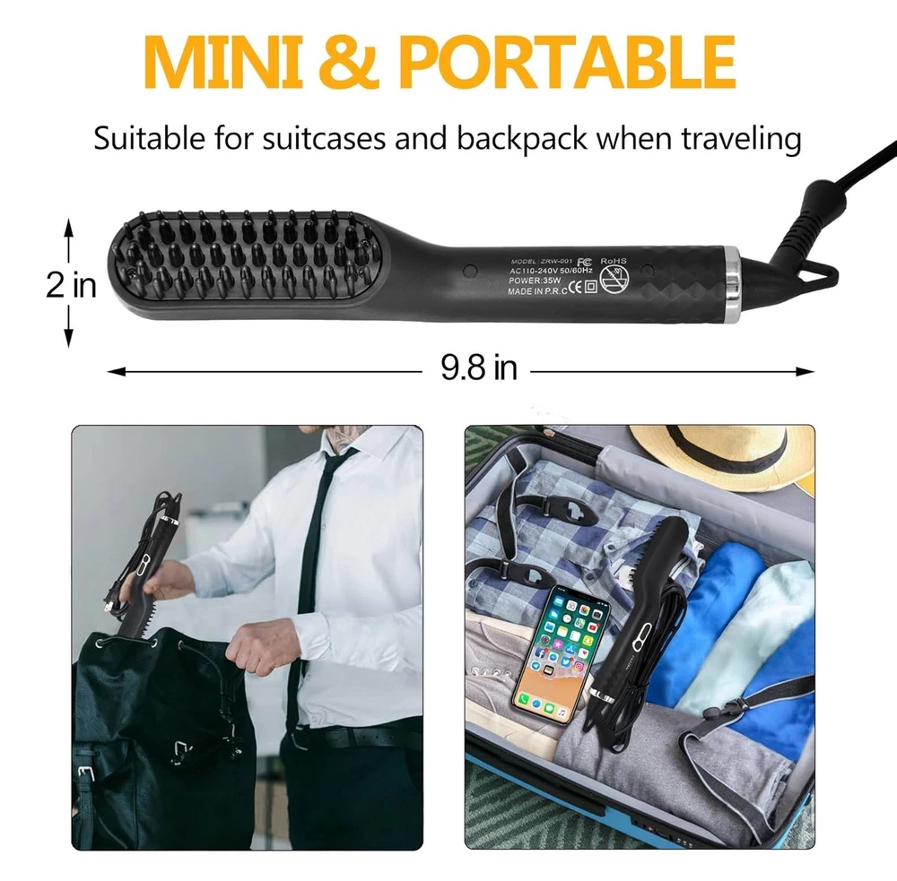 Beard Straightener for Men, Heated Beard Brush w/Anti-Scald Feature,Beard Straightening Comb,Unique Fathers Day Birthday Valentines Gifts for Men Him Dad Boyfriend Christmas Stocking Stuffers SAFE AND EASY MENS BEARD STRAIGHTENER - The best professional hair & beard straightening comb so far,it differs from other products'deficiency such as not hot enough,wouldn't straightening the beard & hair well,the comb bristle easily break off,short lifespan etc,The heated beard comb performs very well for different styles of hair and beard. Not Hot Enough? Wouldn't Straighten the Beard and Hair? - With PTC Heater Technology offers the fastest and stable heat distribution up to 428℉(220°C) in 2 ionic mens beard straightener for men offer 3 heat settings from 356℉ to 428°F which is suitable for most beard or hair types-soft, thin, thick, or curly. The high-quality material and gift box would be top gag gifts for men, fiance, dad, father, coworkers, employees,gifts for men who have everything etc. Can't Straighten Hair and the Comb Bristles Easily Break Off? - Our heated beard comb bristles is extra long,constructed of high-quality glass fiber and no scald coated teeth materials,durable,not easy to break off,the heating elements are spaced much closer together than other products' which makes it more contact w/beard hair & birthday day gifts,anniversary gifts ,christmas day gifts for men husband teenage teen boy. Intelligent Security Protection & Auto Detection - Our beard straightening comb doesn't get as hot as straightening iron,will not burn or damage your hair or finger.Features protective guards around the bristles to avoid scorched or damaged ,it will turn off automatically if not use for 30 mins and when malfunction accurs,it will stop heating to ensure security. US Patented Design & Approved - US Patented Design & Comes with , , , , CA65 tested and approved by and SGS for safety use. A great christmas gifts for men offers a comfortable ergonomic handle and a flexible 360°rotating power cord reduce entanglement during use,slim and lightweight. Add this beard straightener kit to your Cart, you will find this is a brilliant choice you have ever made. We will provide you with this top men gifts set finest products!