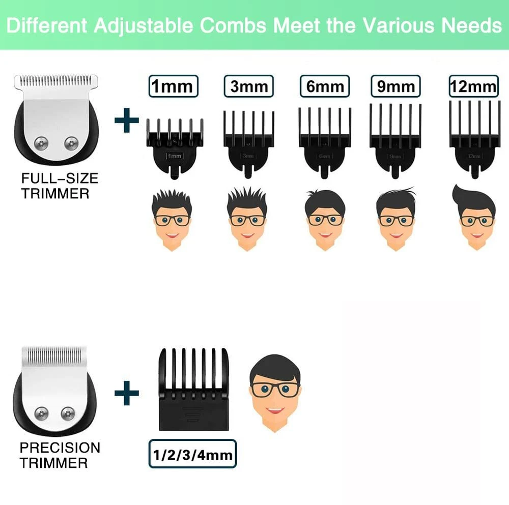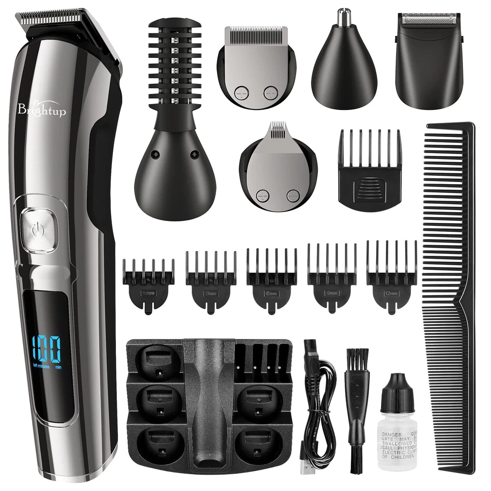All in One Beard Trimmer for Men Kit: Our Manscape all-in-one kit is designed for precision beard trimming and includes 6 trimmer heads and a stand base for easy organization. It also comes with 6 hair trimmer combs that allow you to control the length and style of your beard, body, face, nose, ear, eyebrows, sideburns, neck, groin, leg, pubic hair, ball or other private parts. Whole Body Washable: Our mens beard grooming kit is designed to be fully washable, making it easy to clean after use. The blades are also detachable and can be cleaned with the brush included in the kit. 2 Speed Modes and Low Noise: Our beard trimmers have 2 speed modes. The 7300 RPM speed is suitable for daily use, while the 8800 RPM speed can cut thicker hair more easily. The high-quality motor produces low noise for a pleasant grooming experience. LED Display and USB Rechargeable: The LED display indicates the battery power and reminds you to charge. The built-in rechargeable lithium-ion battery provides up to 90 minutes of run time per charge, and it only takes about 1.5 hours to fully charge. The cordless design makes it easy to use anywhere and is perfect for travel. Self-Sharpening Stainless Steel Blades: The stainless steel blades are self-sharpening and have a precision gap for close trimming. They are also non-corrosive, preventing rust and skin irritation. Ergonomic Design with Travel Lock: The smooth curved handle is comfortable to hold, and the 3-second long press lock design ensures better use. Gifts for Men and One-Year Warranty: This beard trimming kit makes great gifts for men, fathers, husbands, boyfriends, and sons. We also provide a one-year warranty for the beard trimmer. Contact Us: We provide fast and convenient customer service. If you have any questions about our products, please don't hesitate to call us directly at.