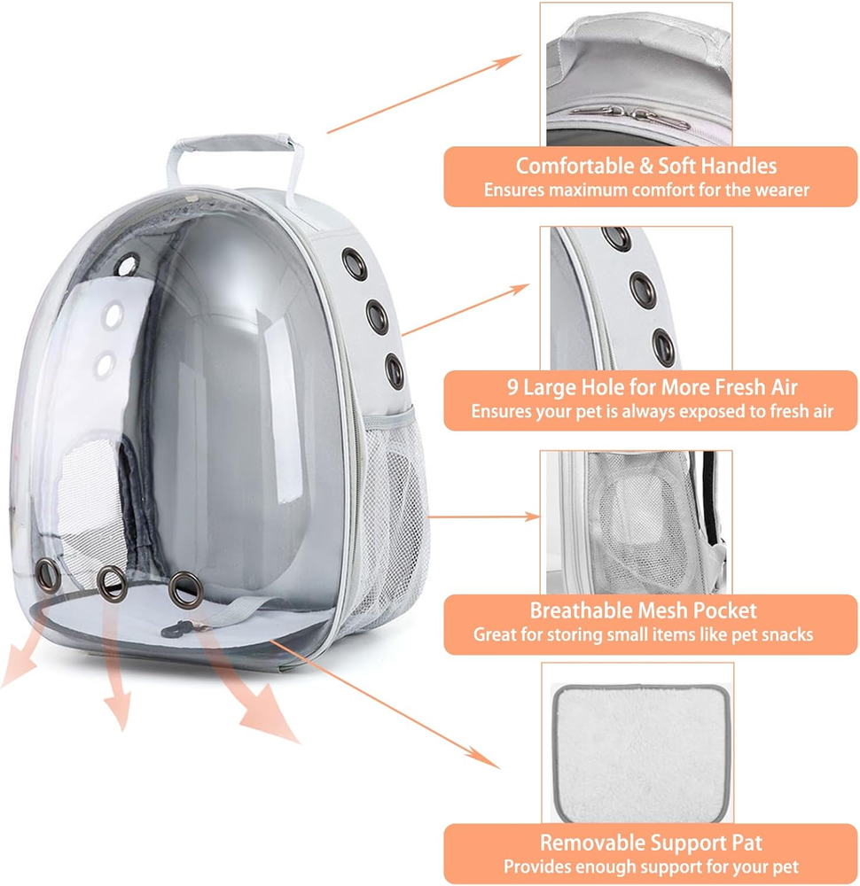 This pet carrier backpack is a game-changer! The clear bubble window lets my bearded dragon enjoy the view while staying secure, and the spacious interior keeps him comfy. The included mat adds extra coziness, and the harness/leash set makes outings stress-free. It's stylish, functional, and my reptile loves it—perfect for adventures together!