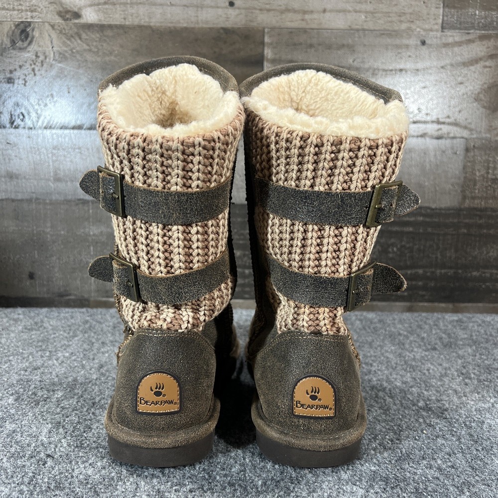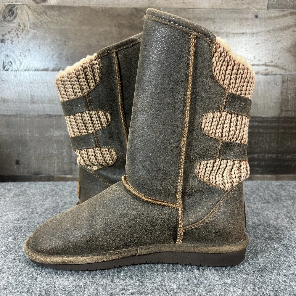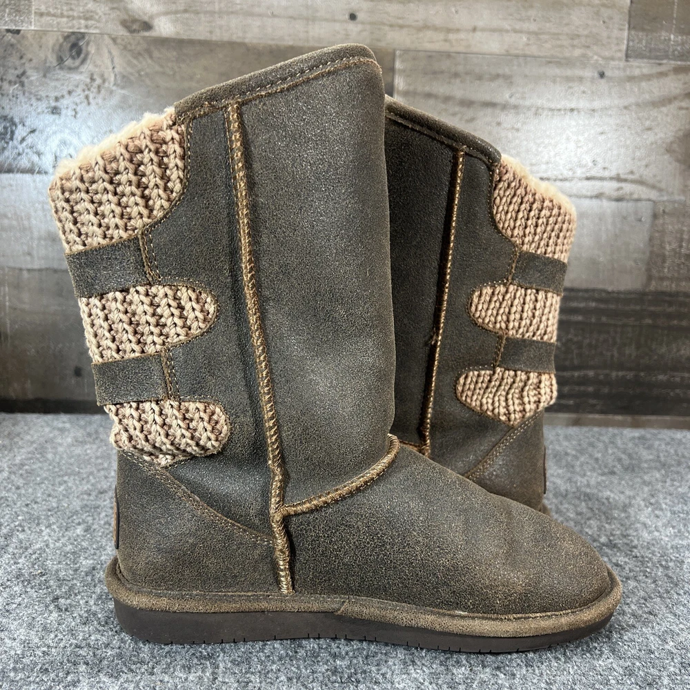 Bearpaw Boshie Knit Boots with Sheepskin Footbed Mid Calf Brown Women's Size 8