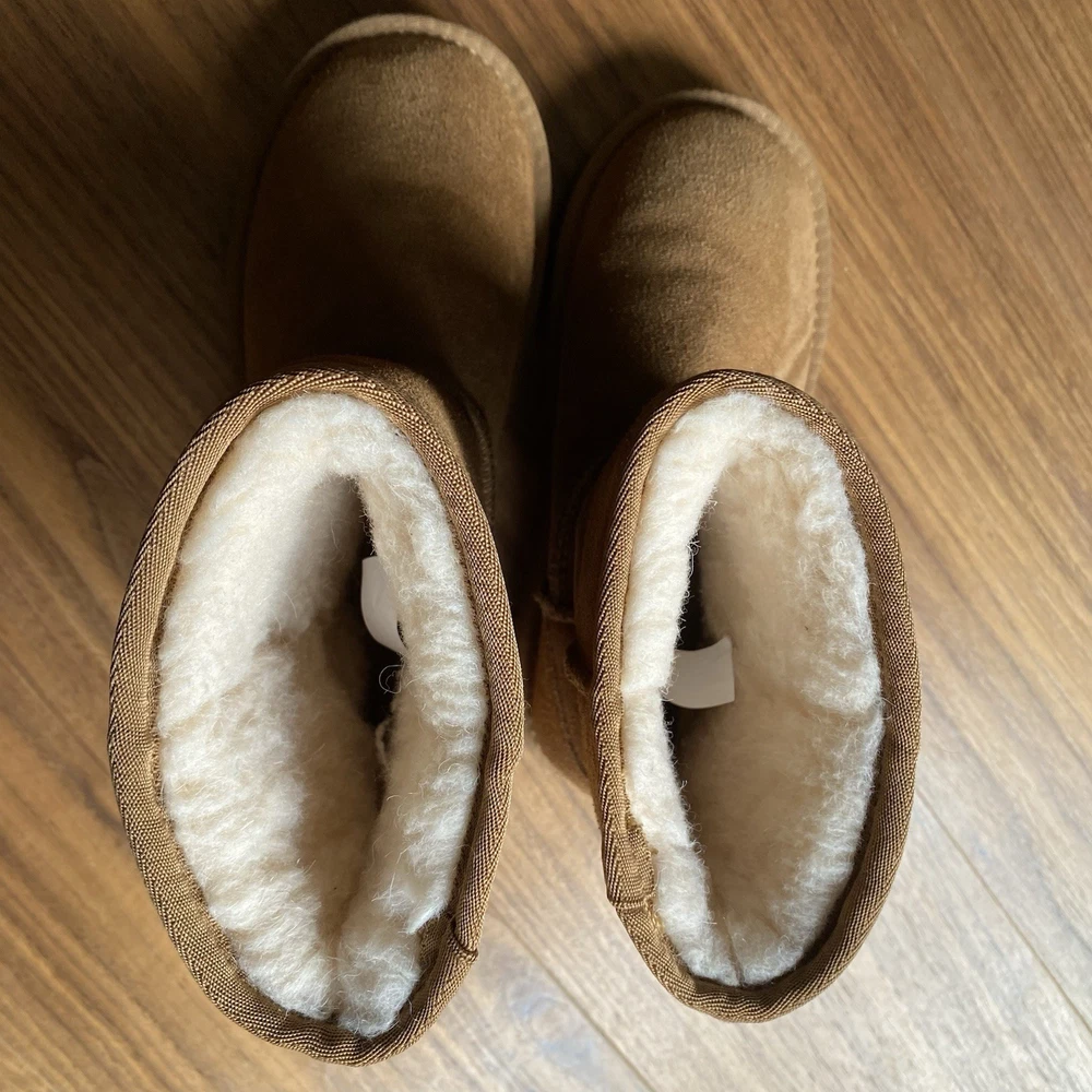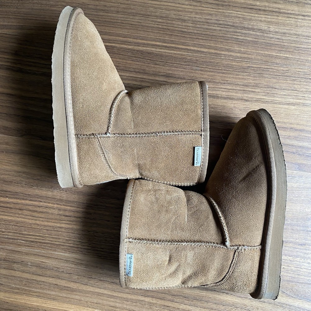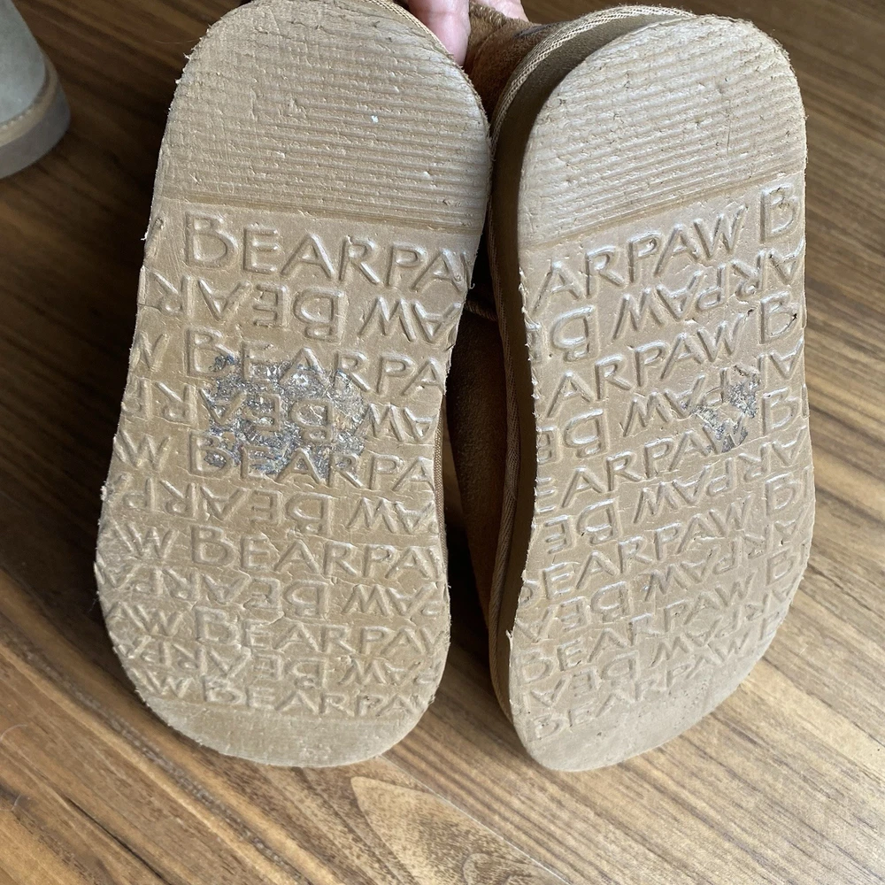 Stay warm in these cozy Bearpaw Youth 4 winter boots, featuring a genuine suede upper and plush wool-blend lining. Classic pull-on design, perfect for cold weather, school, outdoor play, or everyday wear. Features: • Size Youth 4 (fits approx. Women’s 5.5–6) • Chestnut/Tan suede upper • Wool-blend / faux shearling lining • Traction rubber outsole with BEARPAW logo pattern • Pull-on style • Comfortable, warm, and durable Condition: • Good used condition • Minor wear on suede (light marks visible in photos) • Soles show moderate wear but still plenty of life • Clean interior • No major flaws, tears, or holes