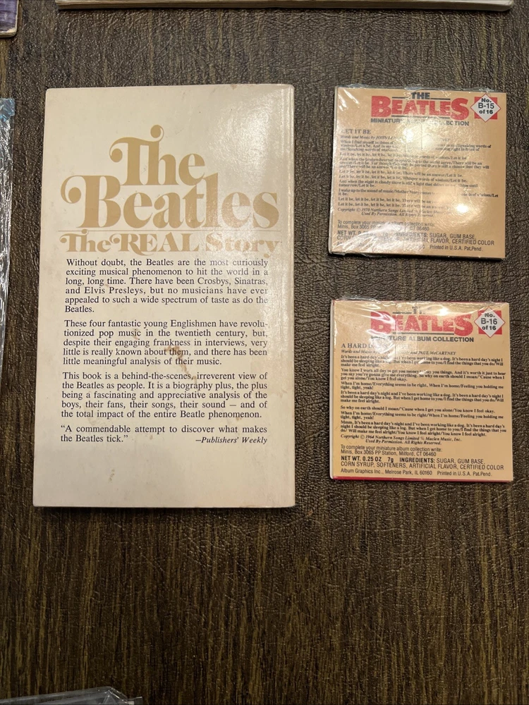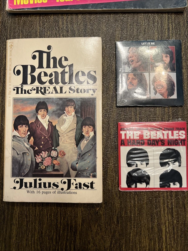 Vintage Beatles Collectibles Lot – Magazines, Picture Disc, Cards, Book & More This is a one-of-a-kind Beatles bundle perfect for collectors, fans, or anyone looking to own a piece of music history. All items are original vintage pieces—no reprints, fakes, or modern replicas. Included in this lot: 🎵 1988 Picture Disc – “Hey Jude” / “Revolution” (EMI RP5777) • Double-sided with full-color and black & white images of The Beatles • Original Apple Records sleeve with halved apple & whole apple art • Produced by George Martin | Excellent condition 📚 “The Beatles: The REAL Story” Paperback • Behind-the-scenes look at the Beatles phenomenon • Vintage bio-style book with fan-focused content • Light cover wear, great for display or reading 🃏 Miniature Album Collection Gum Cards (B-15 & B-16 of 16) • Still sealed in original packaging • Features “Let It Be” and others • Issued by Album Graphics Inc., U.S.A. – hard to find unopened! 📰 Vintage Beatles Magazine Inserts / Posters: • “Going Their Separate Ways” photo collage (all 4 Beatles) • Full-page Paul McCartney with quote: “Paul is the greatest bass player…” • 1965 “On Stage” souvenir pictures booklet – issued by Beatles (USA) Ltd. • All in great shape for their age – perfect for framing or display 🍏 Bonus: Apple Records Logo Insert Sleeve • Iconic green and halved apple designs • Originally housed the picture disc – excellent standalone collectible ⸻ Condition: All items are in very good vintage condition with normal age-related wear. Picture disc is clean and glossy. Cards are unopened. Magazines and book have mild edge wear but no major damage. 📦 Ships securely with tracking and protection for all items. 🎁 Great gift for Beatles fans, vinyl collectors, or music history lovers!