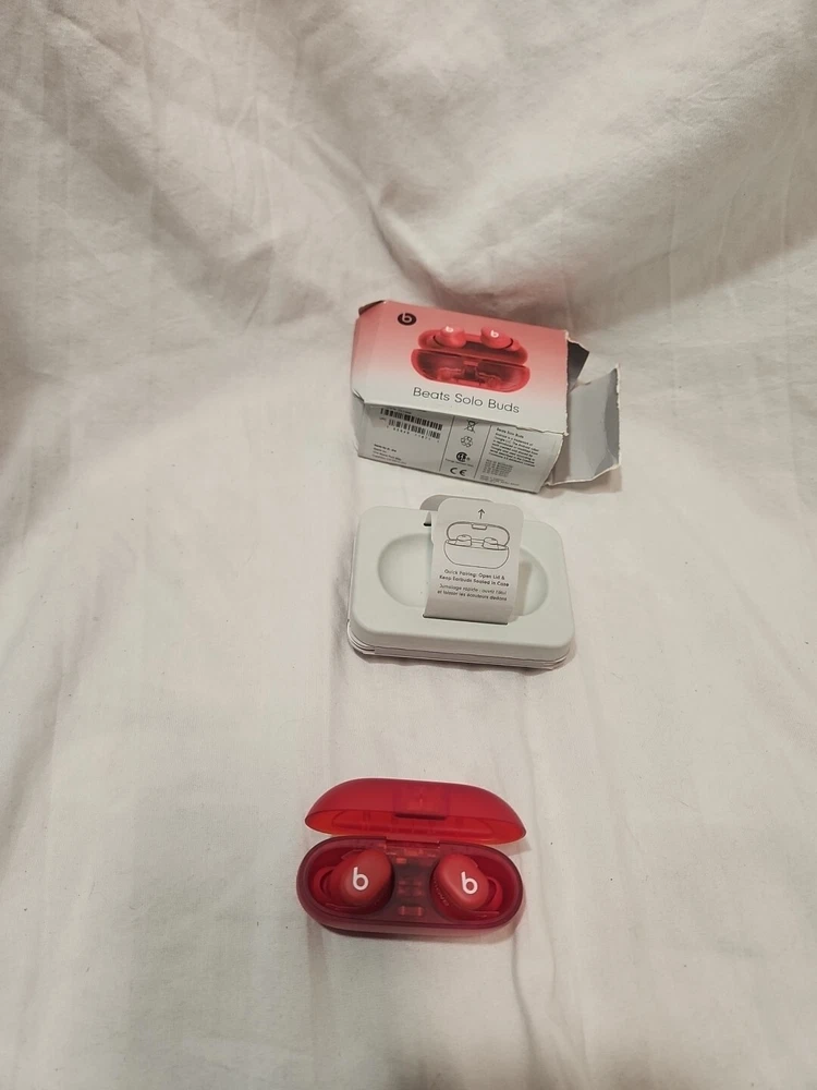 Box was damaged It was sealed, I opened it to inspect the earbuds for damage They are brand new Please allow extra time for shipping if your item contains batteries or lithium as the post office has shipping regulations for batteries and they now must be shipped as hazmat. Hazmat shipments can take up to 15 days longer in transit especially during the holiday season. Please reach out to me before leaving feedback if there are any issues with your order. We value you as a customer and we greatly appreciate you supporting us.