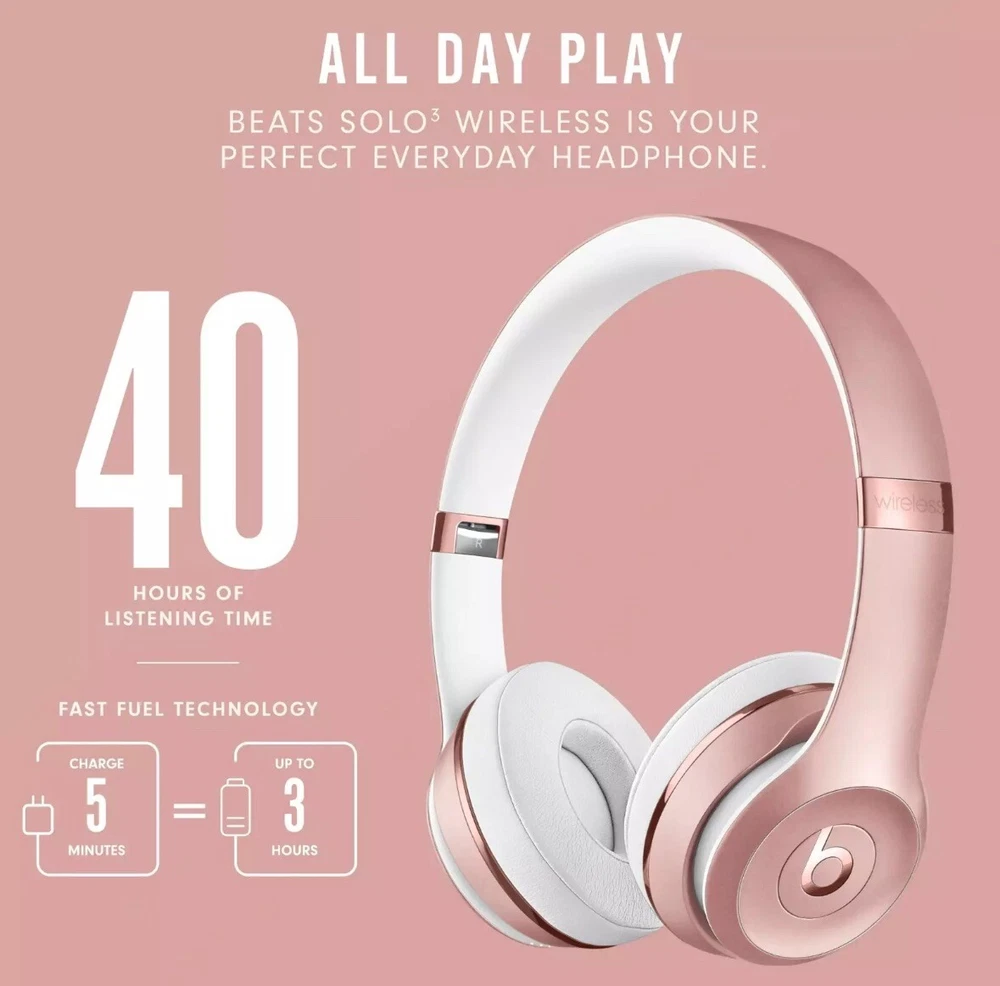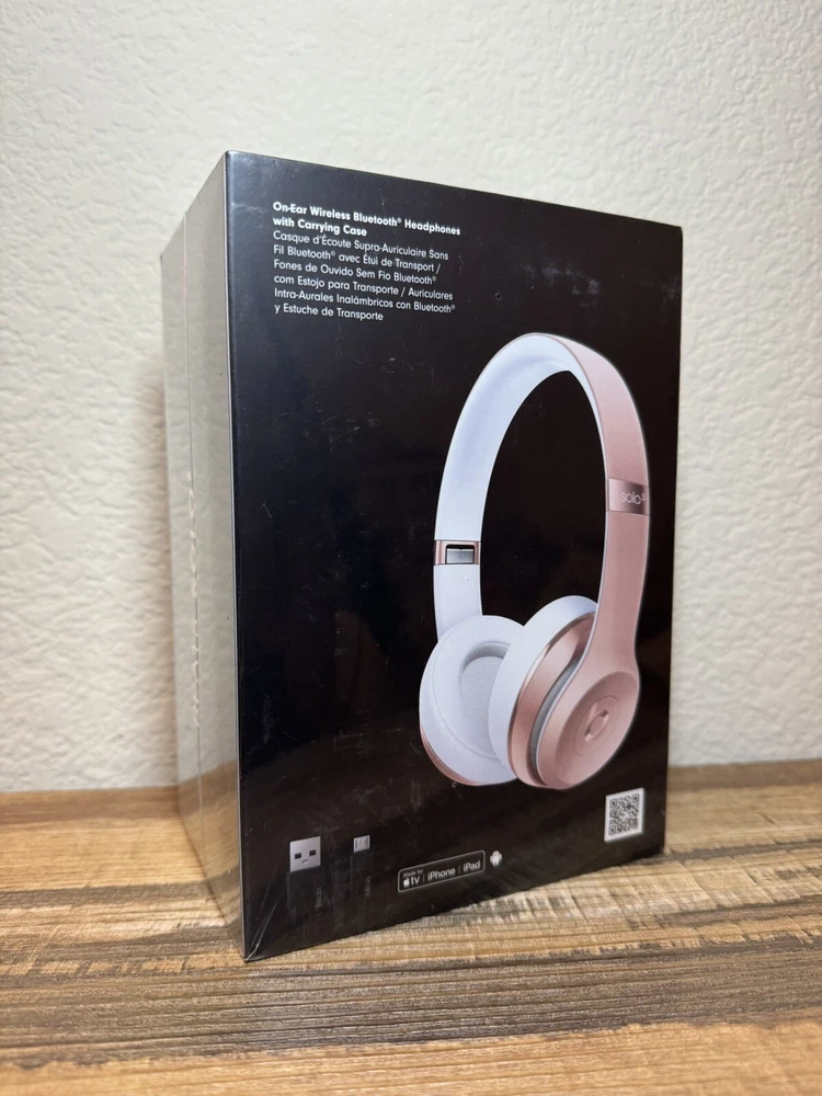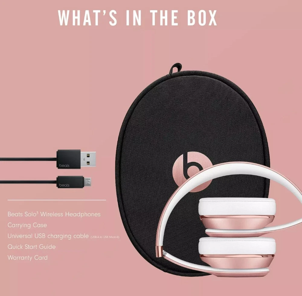 Brand new, factory sealed. What’s in the box: • Beats Solo3 wireless headphones • Carrying case • Universal USB charging cable (USB-A to USB Micro-B) • Quick start guide Comes from a smoke free home. Ships the same day or the next business day!