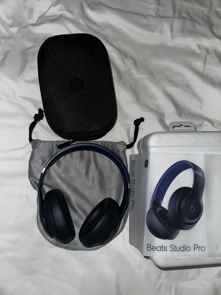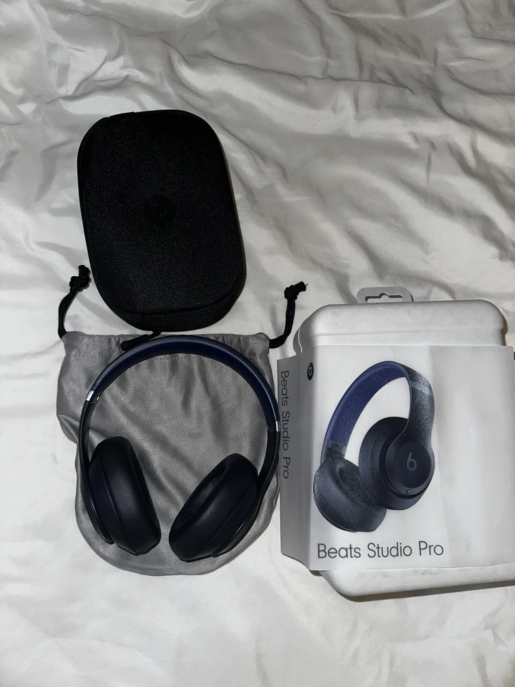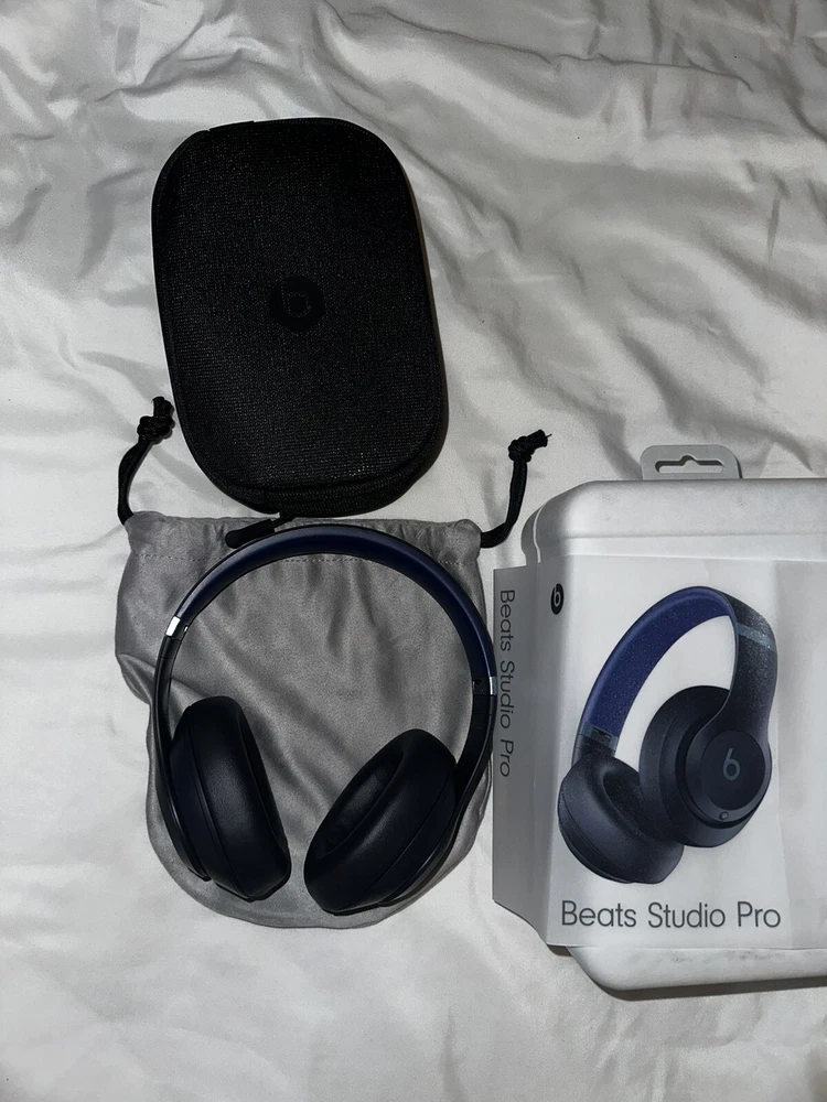 Beats Studio Pro Blue Headphones. NWOT! Never Used. With Original Accessories. In Great Condition. Bought At Bestbuy. Had A Faulty Set. Was Given These Under My Warranty. Have Not Been Used. Brand New, But Not In A New Packaging.