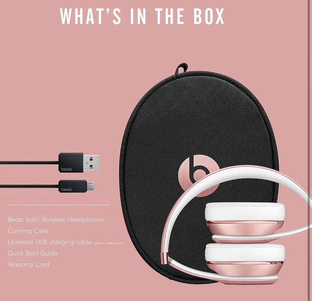 Type:Ear-Pad (On the Ear)Number of Earpieces:DoubleMicrophone Type:Built-InUPC:0190199312487Color:Gold, PinkForm Factor:HeadbandModel:Beats by Dr. Dre Solo3gtin13:0190199312487Brand:Beats by Dr. DreFeatures:Adjustable Headband, Volume Control, Rechargeable Battery, Leather Cushions, Foldable, Stereo, In-Line ControlConnectivity:Bluetooth, 3.5mm JackMPN:MX442LLAWireless Technology:Bluetooth