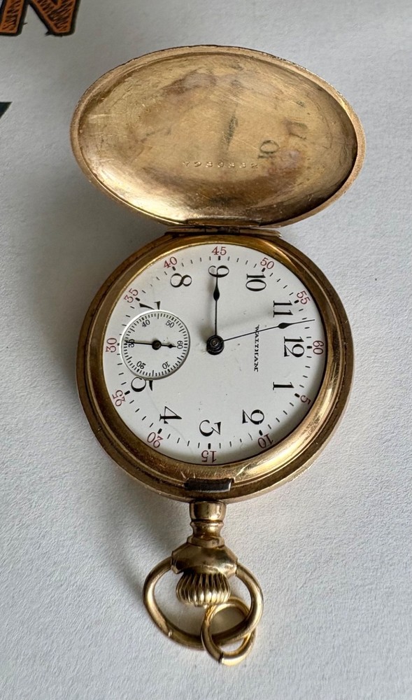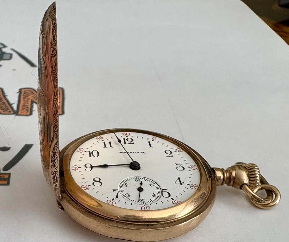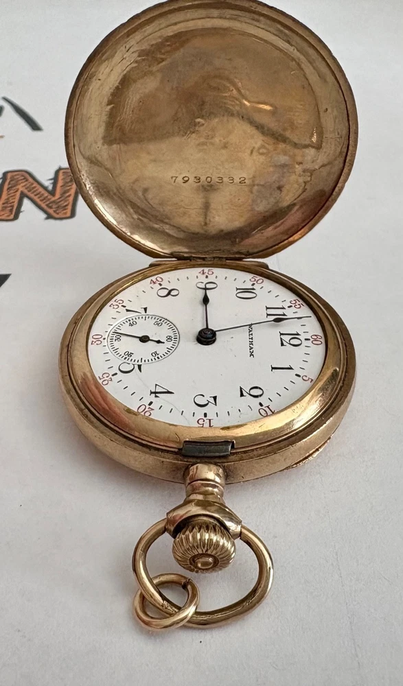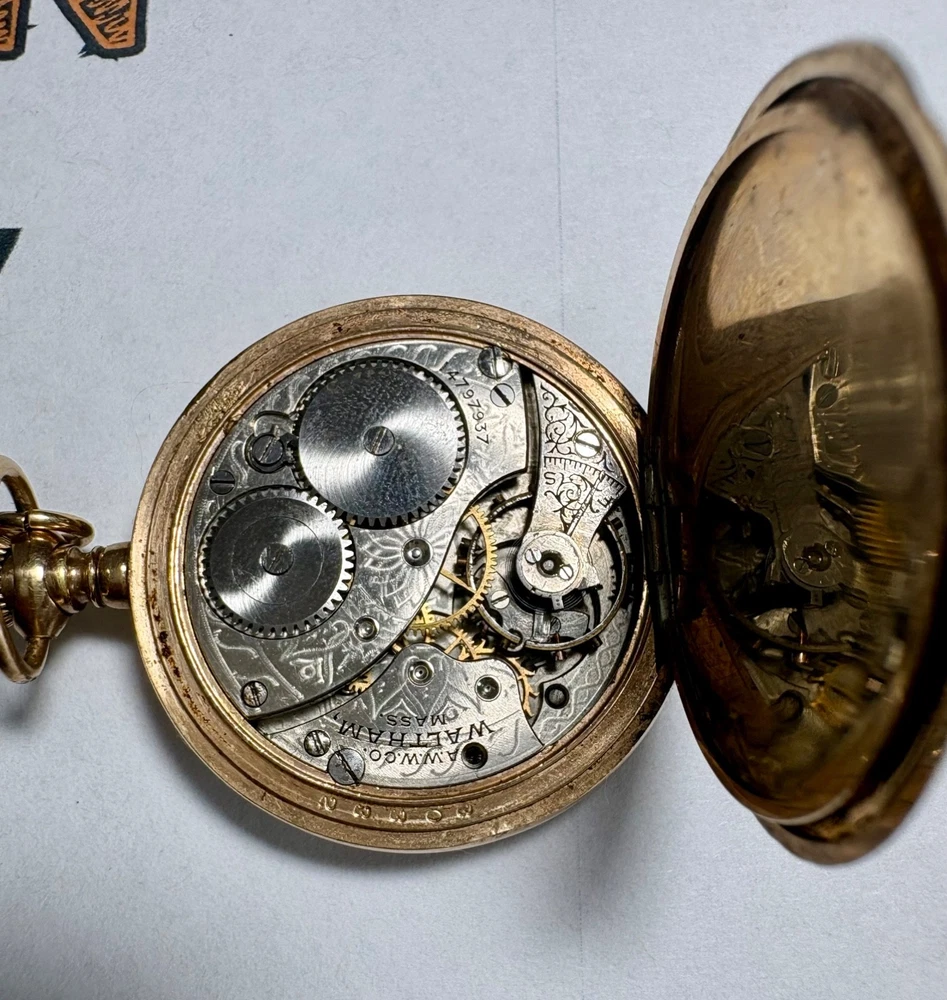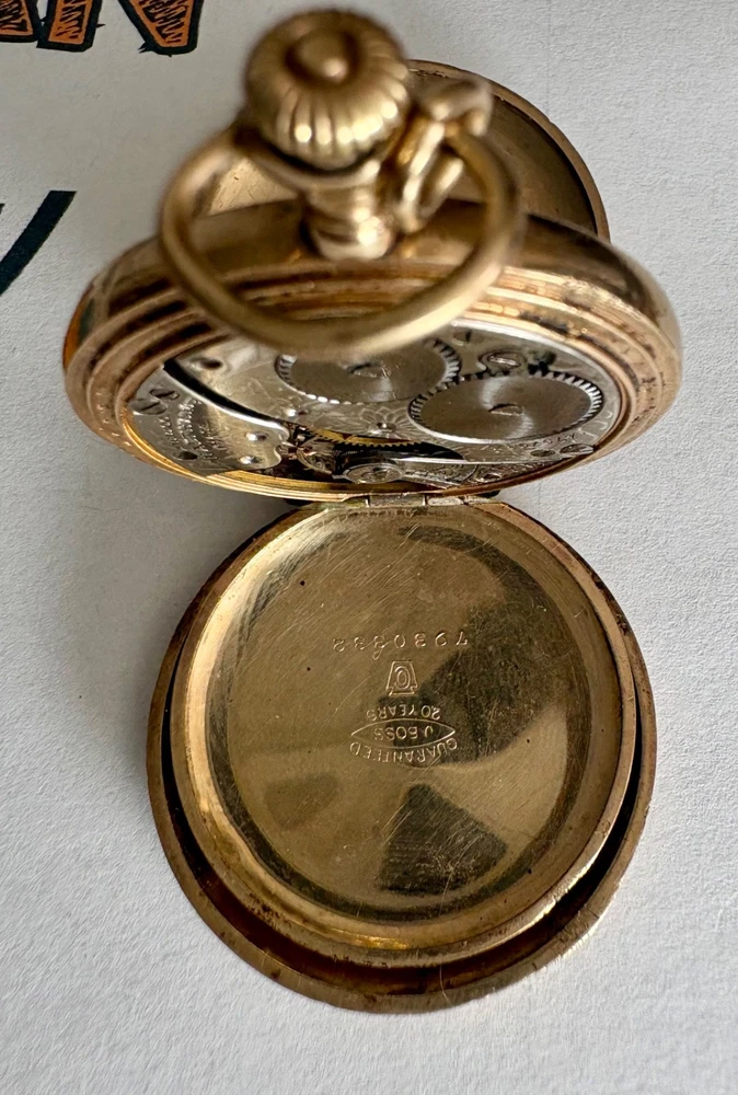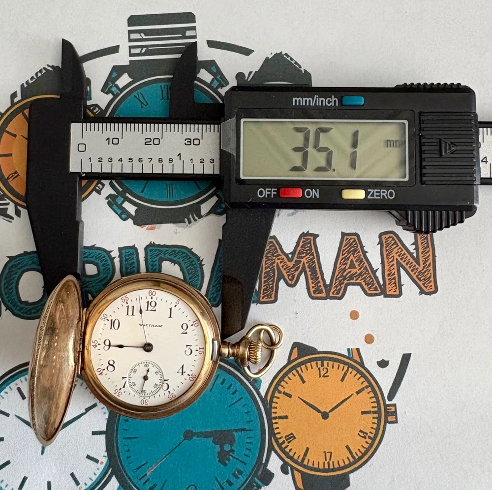 Beautiful physical condition 1907 Waltham hunter pocket watch. Size 0s, 7 jewels, gold filled case with “Guaranteed 20 Years” stamped inside. Watch is complete with the exception of the crystal needs to be replaced and looks great for being 119 years old. Watch case diameter is 35.1mm. The balance wheel does spin, the watch winds up but I cannot get it to "tick". Watch gold plating does have fine scratches. The photos I included were shot with very bright light so they are very visible, in normal light the watch looks like a mirror on most of its surfaces. Note the info from pocket watch database showing the estimated year of production if you look up the serial number 14797937. There are a couple of very small imperfections on the case as should be expected for the age of this watch. Item Size: 0s 35.1mm case width Item Condition: Antique for parts. Will need some work on the movement, and a new crystal as this is missing. Items Included: Watch only. Returns Accepted: No Please note: ALL photos are of the actual item listed in this sale or supporting documentation of the item. Shipping: All items are shipped typically within 2 business days. Tracking is provided. All items above $100 in value will have added insurance added and tracking. All luxury/premium watches will have an option to first ship to an authenticator. Returns: I have a select policy on returns for certain items please read this and ask any questions you might have. I do my best to provide an abundance of details of each item including photos, videos in most cases, wrist size for wrist watches, watch case diameters, etc. I am happy to provide additional photos or answer questions before you commit to purchase but please measure your wrist to ensure the proper fit for yourself. Antique items as an example including parts watches that are sold as for parts or not working will not have a return option available. All approved returns need to be completed within 14 days and all items with a value of $100 or more need to have insurance coverage for the original sale price. All items that originally went through authentication must return back through the authenticator prior to return and refund.