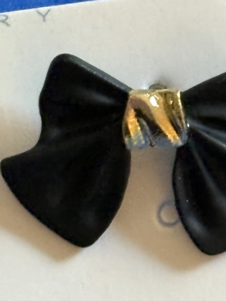 Beautiful Black Hard Bow With Gold Tone Stud Earrings
