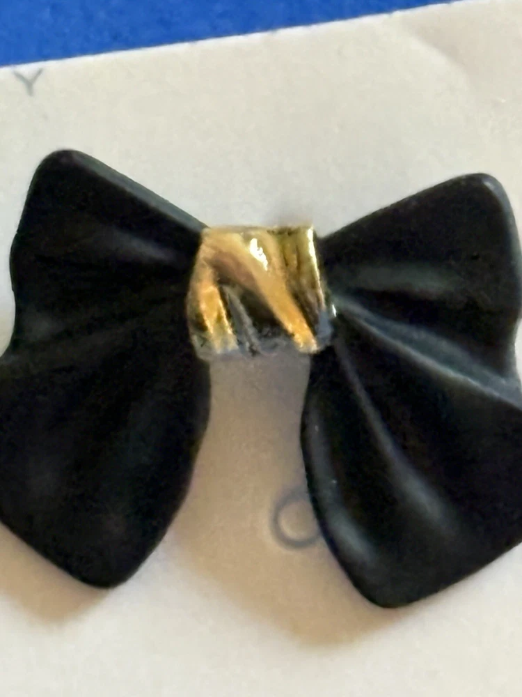 Country of Origin: Unknown Metal: Yellow Gold Plated Item Length: 0.59” Personalize: No Setting Style: None Secondary Stone: No Stone Theme: Art, Beauty Cut Grade: Very Good Style: Stud Main Stone Shape: Round Gender: Female Color: Black Shape: Bow Main Stone Creation: Unknown Brand: Unbranded Ear Area: Lobe Type: Earrings Closure: Secure Lock Back Material: Stone Main Stone Treatment: Unknown Main Stone: No Stone Metal Purity: N/A Main Stone Color: No Stone
