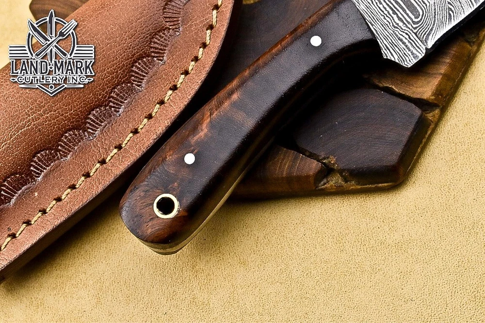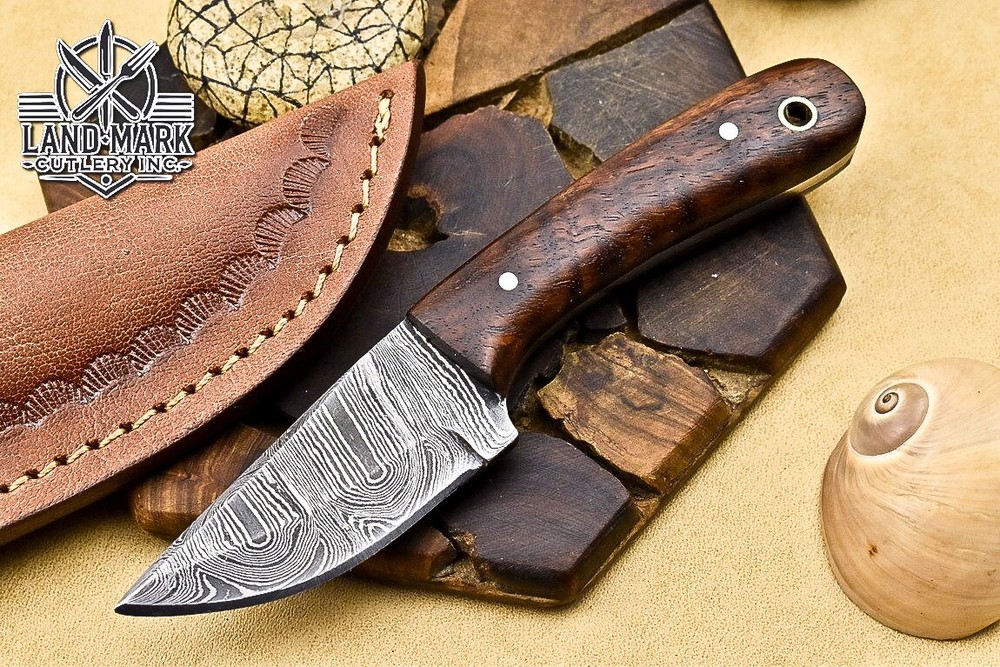 Custom Hand Made DAMASCUS STEEL HUNTING KNIFE WITH ROSE WOOD HANDLE We offer a shipping discount for More then one purchased . And discount will be apply on combine invoice, Discount will not apply on separate payment. ITEM DETAILS OVER ALL LENGTH 3.0 inches long (Approx) HANDLE LENGTH 1.5 inches long (Approx) BLADE LENGTH 1.5 inches long (Approx) BLADE HARDNESS 58-60 HRC Which Holds HANDLE MATERIAL ROSE WOOD COVER LEATHER SHEATH This Awesome custom made KNIFE has a nice hand forged with the combination of 4340 & 1080 steel. HOW OUR DAMASCUS IS MADE: All our Damascus is real and not just an acid etch. Damascus is a mixture of 1080HC and 4340 nickel carbon. You heat them up together and then fold the bar over and over to get the desired layers, ours are 396 layers. Then you burn the blade in acid, and it turns the nickel satin color and the high carbon turns blackish gray. This is how the layers are exposed to show the layers of the new steel created coined "Damascus". All Damascus is acid etched to show the layers. If you high polish the metal it will be shinny satin like all steels. Only after you burn the sides of the blade with acid do you see the layers of the two steels. Makes sense? After we make our knives we high polish the handles and put an edge on the blade. The high polishing buffs off the acid burned layer of the handle, and the blade edge is sharpened and the acid burned edge becomes satin. You can re-burn the tang of the blade near the handles and the edge of the blade and it will show the layers once more. All our knives are hand made, durable and unique ***** YOU WILL RECEIVED THE SAME KNIFE Qality Standards Our Damascus blades are made from high quality non-stainless steels which rival or exceed any Damascus blade made from the 10 series with 4340. Our Damascus combination has taken years to perfect and has been tested under a variety of application which will offer professional performance in categories of toughness, strength (lateral stress) and edge honing and holding ability. In a 5 spot Rockwell test our blades will average near or close to 58 which offers a perfect balances between its toughness and strength.Our blades due to carbon content need to be regularly treated with wax and/or 3 in 1 oil to maintain its superior quality. Questions if you have any question feel free to send us message we aim to answer all questions within 24 hours Feedback If you are not satisfied with our service please contact us before leaving any negative or natural feedback. We will resolve all issues as quickly as possible. Disclaimer We are not responsible for any injuries associated with the use of our tools. Our products are intended for legal use only by responsible buyers. Therefore, we will not sell our products to anyone under the age of 18. Before bidding please check your country laws as some countries Custom don't allow this. If your purchase is held by Custom Authorities in your country/State we will not be responsible for that and no refund will be issued Shipping We offer a 20% shipping discount for More then one purchased . And discount will be apply on combine invoice, Discount will not apply on separate payment We ship within 24 hours after receiving complete payment but this can be delayed due to week ends or Governments and Religious Festivals . . This is beyond our control and we apologize for this inconvenience. Precautions Our Tools are very sharp so open and use them very carefully We are not responsible for any injuries associated with the use of our tools Tips to Care knife 1. NEVER STORE YOUR KNIFE FOR LONG TIME IN LEATHER SHEATH. 2. LEATHER CAN ABSORB WATER, WHICH WILL RUST THE KNIFE. 3. ALWAYS CLEAN THE BLADE AFTER USING WITH OIL OR WAX