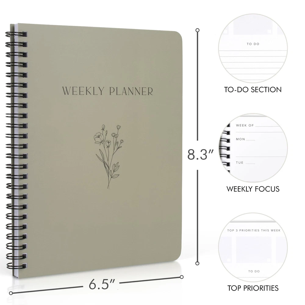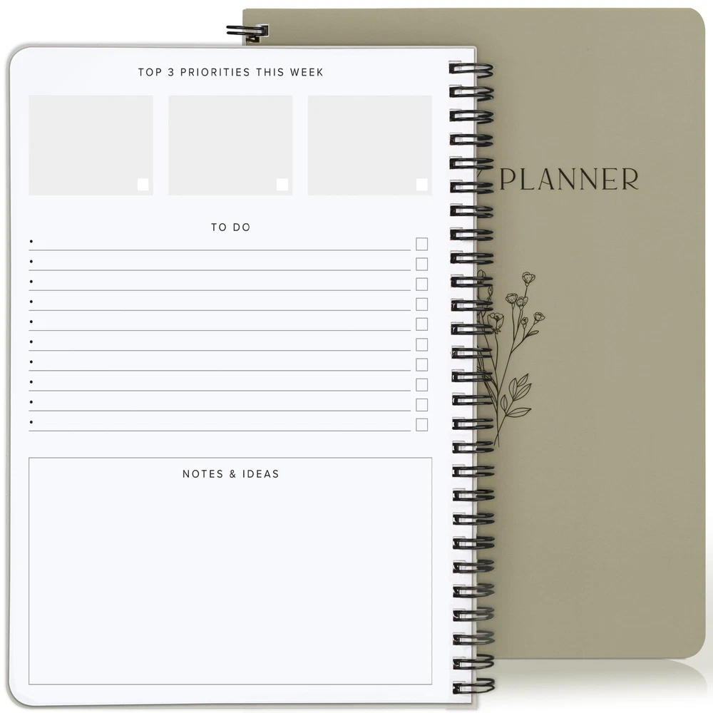 Transform Your Weeks By Planning For Success With The Beautiful Undated Weekly Planner By ZICOTO! Turn your weekly schedule into a smooth organizational masterpiece with ZICOTOs’ undated planner, designed to effortlessly tackle every week's tasks. The minimalist planner ensures 52 weeks of well-organized priorities, to-dos, ideas and more, offering efficient planning to streamline and de-stress your life. Experience the natural surge in focus and productivity with the functional to do list planner. The simple and clean layout enables you to maximize your focus, keeping your mind clear as you structure your weeks towards achieving your weekly goals. The 8.3x6.5” productivity planner offers plenty of space to unleash your inner organizational genius. Each week unfolds with two pages, offering ample space for priorities, to-dos, notes, and creative ideas. Seize the opportunity to get the most out of your weeks – and ultimately, your life. Each glance at your planner becomes an inspiring moment! Not only do you feel empowered by your new-found planning mastery, the beautiful design of the to do planner sparks creative flow and motivation. Furthermore, the sturdy ring wire binding adds stability and durability to your planner. Start your journey towards enhanced organization and reduced stress anytime you want - the undated design of the weekly planner makes it possible. Whether you're embarking on a weekly planning session, using it as a daily journal, a habit journal or simply freeing your mind with a daily brain dump, the undated planner is ready for you to grasp the opportunity and make a positive change in your life. Manage Your Weekly Agenda With Ease: Tackle each week effortlessly with Zicotos’ undated weekly planner. The versatile to do planner is designed for 52 weeks of organized priorities, to-dos, schedules and more. Streamline your life with efficient planning! Ultimate Focus & Productivity Boost: Thanks to the straightforward layout of the minimalist to do list planner you can transform your weeks into a well-structured, fulfilling journey towards your goals & aspirations by maximizing your focus and keeping a clear mind Plenty Of Space To Ignite Planning Mastery: Find ample space in the 8.3x6.5” undated planner to stay on track and get the most out of your weeks - and life. The productivity planner offers 2 pages per week with space for priorities, to do’s, notes & ideas Absolutely Beautiful & Modern Design: Turn your weekly planning routine into an inspiring experience! The top-notch undated planner stuns with a minimalist, stylish cover in timeless beige with an elegant gold foil and a robust golden ring wire Perfect To Start Anytime - Seize The Moment: Enhance planning, reduce stress - kickstart your life upgrade whenever you're ready! As a weekly planner, daily journal, habit journal or for your daily brain dump, the undated planner is ready for you to start anytime