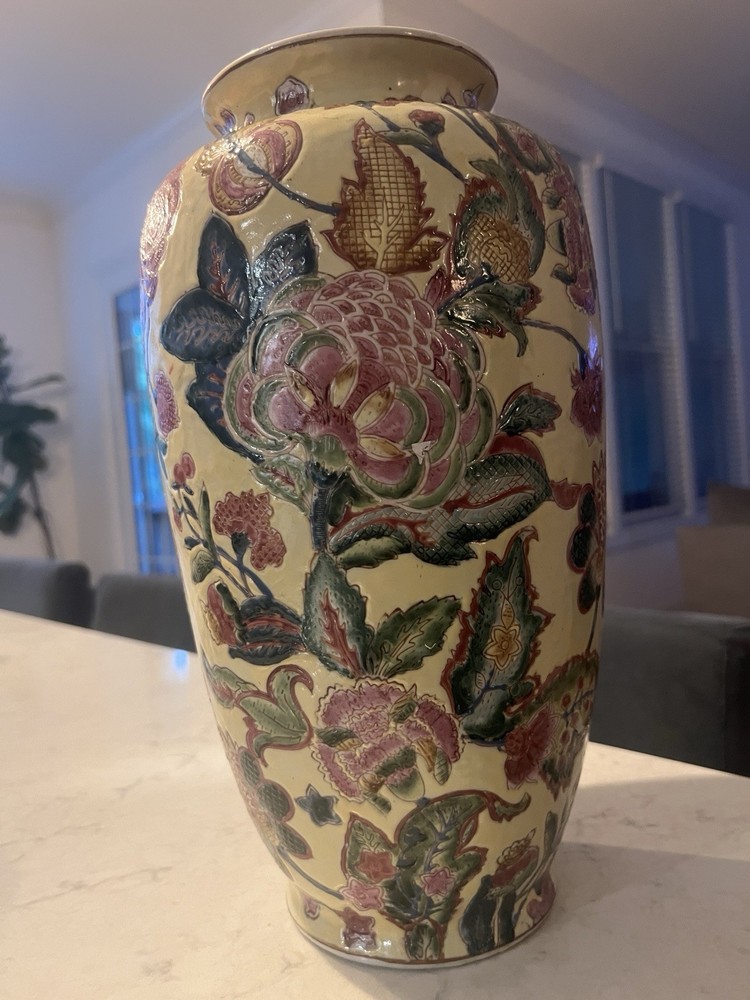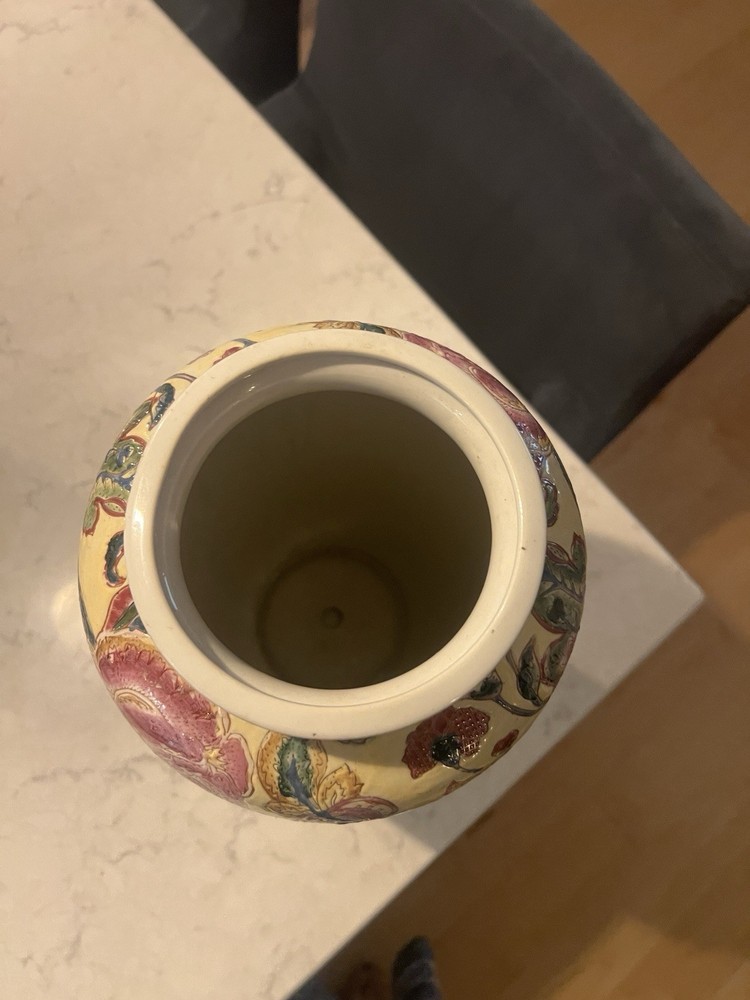 Finish:GlossyFeatures:Hand PaintedSubject:FlowerNumber in Pack:1Department:AdultsPattern:FloralType:VaseOriginal/Reproduction:OriginalSize:MediumOccasion:All OccasionsShape:BottleColor:MulticolorCare Instructions:Clean with Damp ClothEra:Late 20th Century (1970-1999)Material:CeramicAntique:NoSigned:No