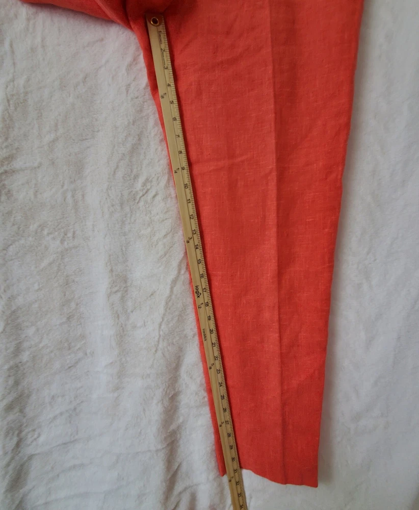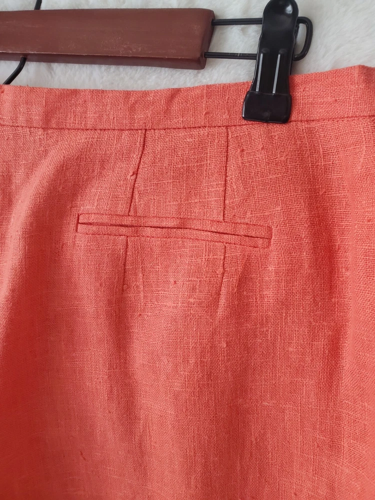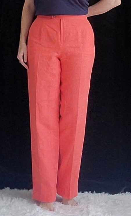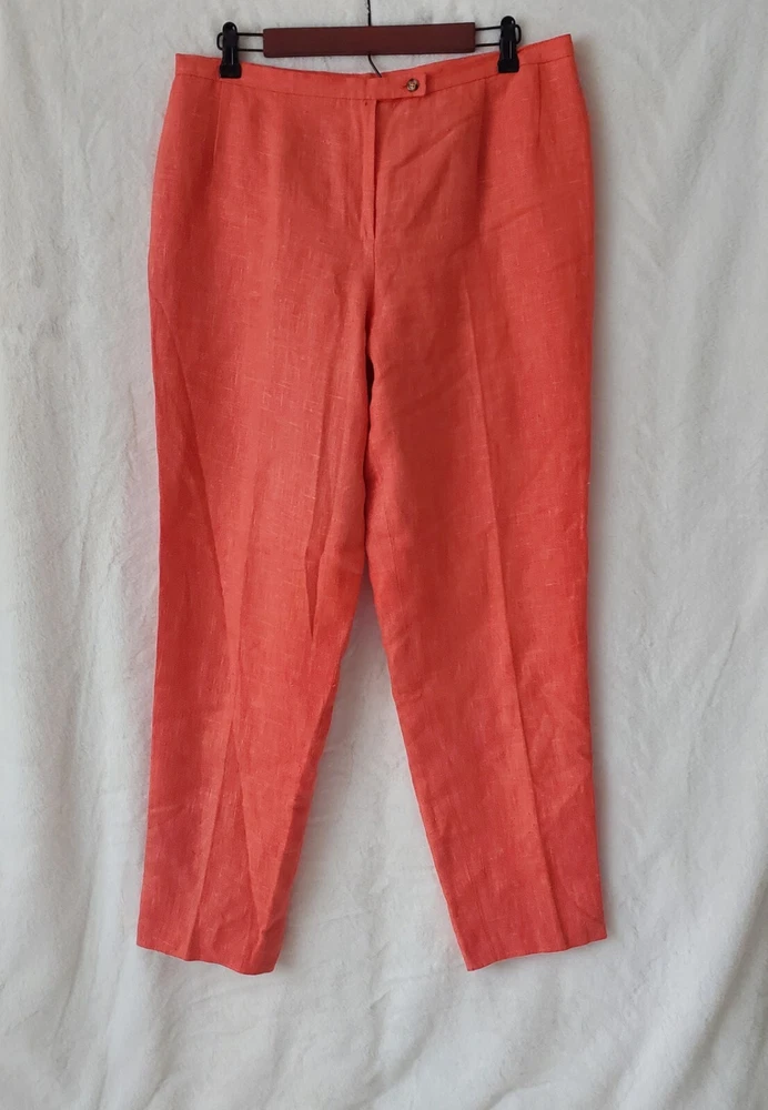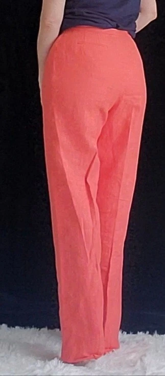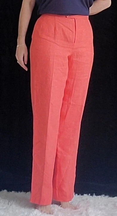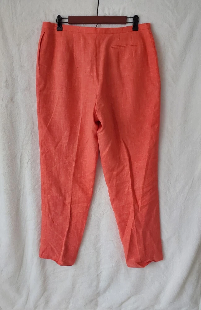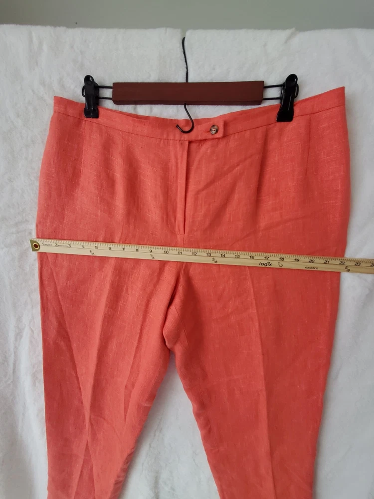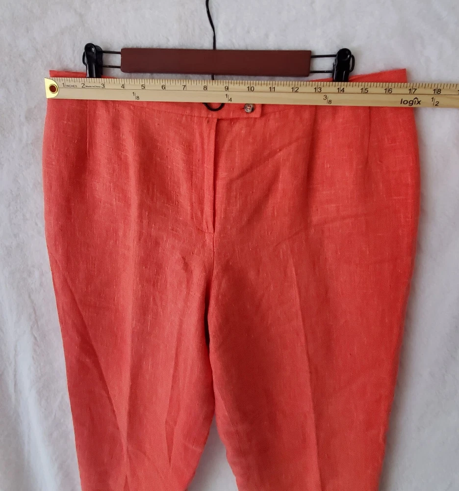 Harve Benard 100% Linen Straight Leg Lined Pants Size: 14 Color: Coral • Straight-leg design • Button closure • Side pockets • Made in Ukraine • 100% linen material Waist (side to side laying flat) 17" Hip to hip 22" Inseam 31" #A27