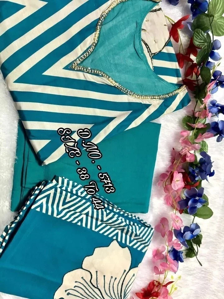 PRODUCT DESCRIPTION "Product Details Beautiful Heavy Muslin Silk Fabric, Long Kurti ( Length - 44”) With Full Lining (inner - Back & Front) + Heavy Hand Adda Beads & Sequins Work On Yoke & Flower Prints + Heavy Silk Fabric Pant + Heavy Muslin Fabric Dupatta With Digital Print Work 👗 ⭐ D.NO. - 5713 😍 4 Colours Available 🥰 ⭐Size: M/38, L/40, XL/42, XXL/44 🤩 Price /- FreeShip (38 To 44 Size) 🤩 ⭐ Same Day Dispatch ✈✈✈ ⭐Size: M/38, L/40, XL/42, XXL/44, 3xl/46, 4xl/48, 5xl/50, 6xl/52, 7xl/54 🤩 Price : - FreeShip (38 To 44 Size) 🤩 🤩 Price : /- FreeShip (46 To 54 Size) 🤩 ⭐ Same Day Dispatch ✈✈✈ Enticingly elegant Kurta Pant set will certainly be a perfect paradigm for a classic look. This set is best reflection to your sophistication. A perfect match to twin on any day. Specially designed with Rayon fabric and most subtle colours to scale the decency within yourself. It will be undoubtedly the best choice you will have in your wardrobe poured with comfort, class, elegance and style. Manufacturing, Packaging and Import Info plus size women wear , kurti set,6xl kurti women ,women oversize dress, plus size wear, 5xl kurti set, 4xl kurti set, Indian kurti plus size, women wedding wear plus size, casual kurti set plus size, daily wear kurti set oversized, 3xl kurti set for women ,women 7xl kurti set, women plus size clothing, big size dress, indian kurti set, 7xl kurti dupatta set, women dress big size, us plus size dress, PAYMENT METHODS We accept Payoneer and the rest other modes of payment are also accepted. It is easy and safe for you to pay by credit cards, debit cards, bank transfers, and Payoneer account balances. Payment should be made within 2 days after the winning of the item. SHIPPING POLICY US shipping - Free Shipping International-Free Shipping Each item is individually packed securely with quality products to help ensure safe and undamaged delivery. We ship within 1 business day after payment is received. Delivery is generally within 10-15 days worldwide after shipping. In rare cases, it makes take up to 2-3 weeks for delivery depending upon the destinations and customs regulations in your country. All packages have a duly filled customs declaration form to avoid any delay in customs. RETURN POLICY Your satisfaction is of the utmost concern to us. Should you need to return an item, you can do so within 30 days of receipt of the item for a full refund. Return shipping charges are not reimbursable. All items must be in their original condition, not worn or altered. Please contact us if you would like to initiate a return, so that we may guide you through the process. We can be reached through the "Ask a Question" link on the listings. FEEDBACK We strive for 100% Customer Satisfaction and we always leave positive feedback to our buyers. Please help us maintain our business and give us a 5-Star rating. If you still think that you still can?t leave a 5-Star across the Board, please email us or call us and we assure you that your issue will be resolved immediately. We believe in solving the issues. Positive feedback represents our service, product quality, and dedication to customer satisfaction. Our future business depends on your satisfaction or positive feedback with a "5-star rating". Thank you !!