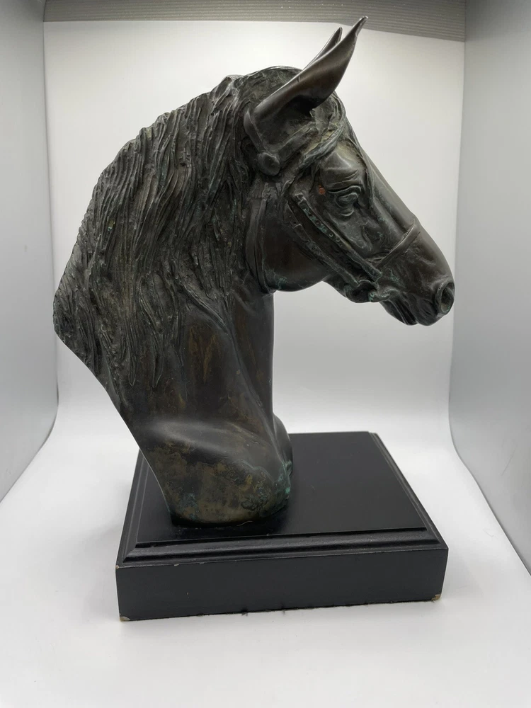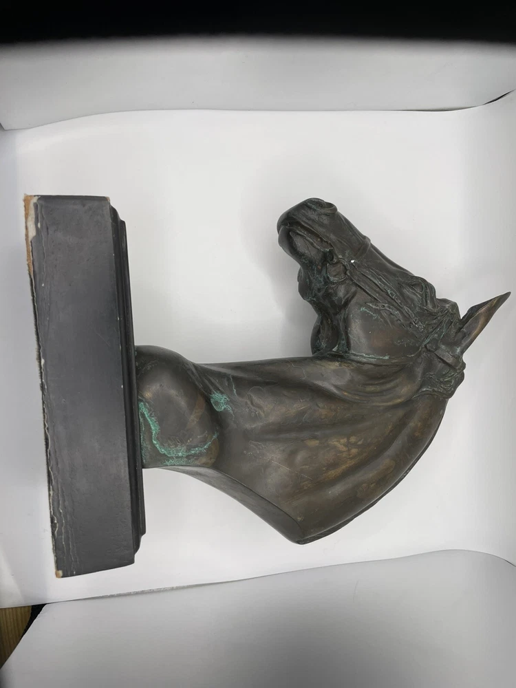 Beautiful Horse Bust Detailed Cast Copper/Brass 10" tall Black 4.5" x 6" base Beautiful (I believe to be copper/brass) horse bust. Very detailed and intricate! Base itself has some cosmetic issues. Please review all photos and feel free to reach out with any questions. THANK YOU *FAST, FREE AND SAFE SHIPPING*