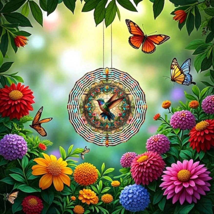 This 8-inch 3D wind spinner features a beautiful design of a hummingbird and flower, making it a perfect gift for hummingbird lovers. The spinner is made of metal and is weatherproof, ensuring durability in various outdoor environments. With a contemporary style and glossy finish, this medium-sized wind spinner adds a colorful touch to gardens, rooftops, porches, balconies, flower beds, and lawns. Easy to care for with simple cleaning instructions, this multicolor wind spinner is a lovely addition to any summer decor. These are custom-made to order please allow two days for processing, thank you