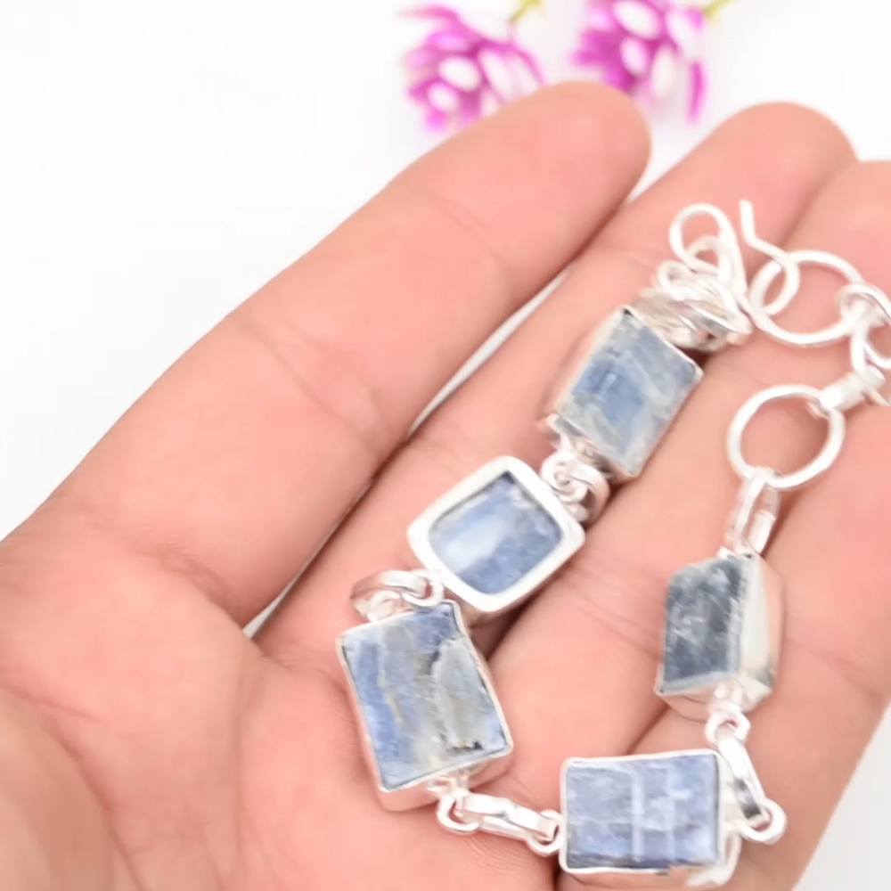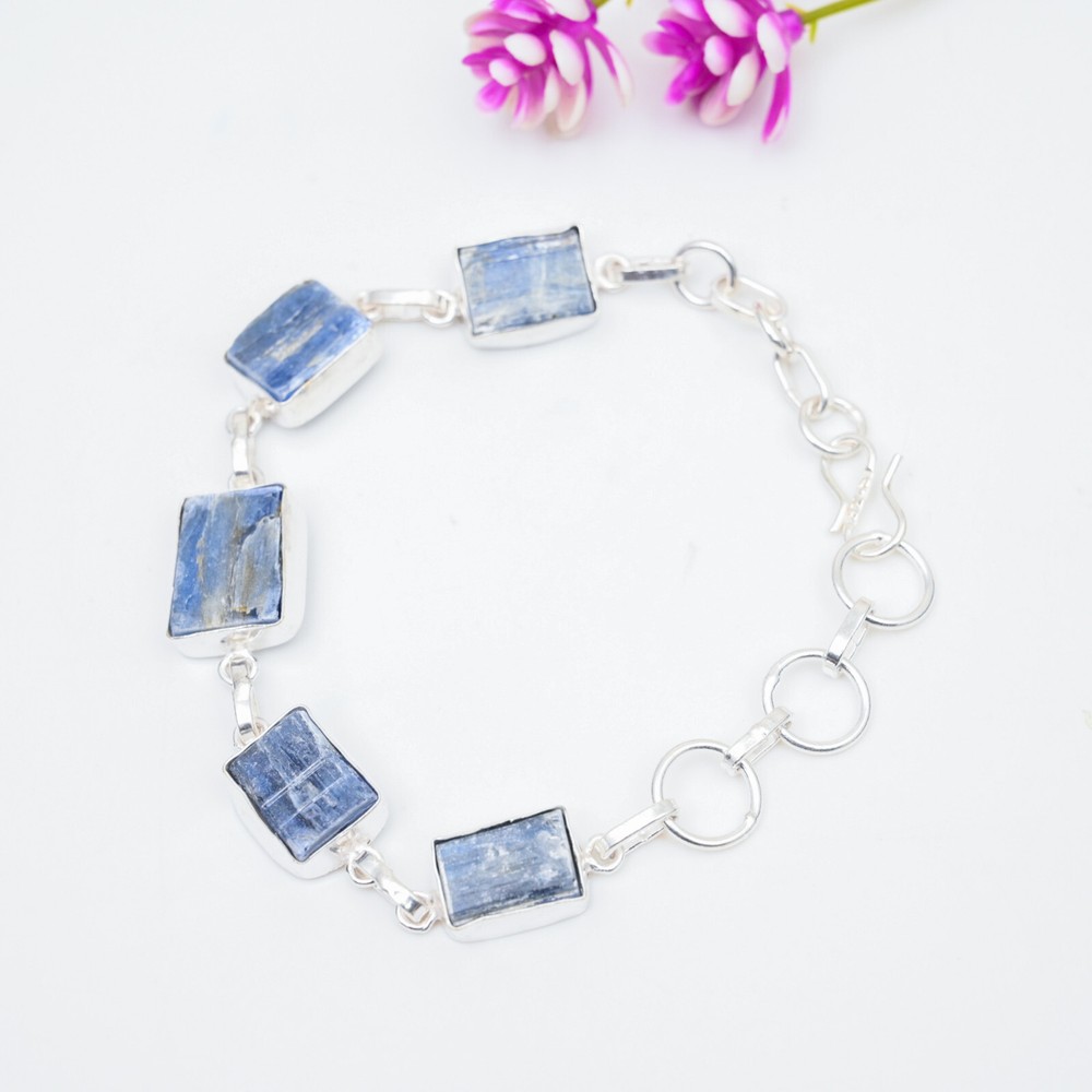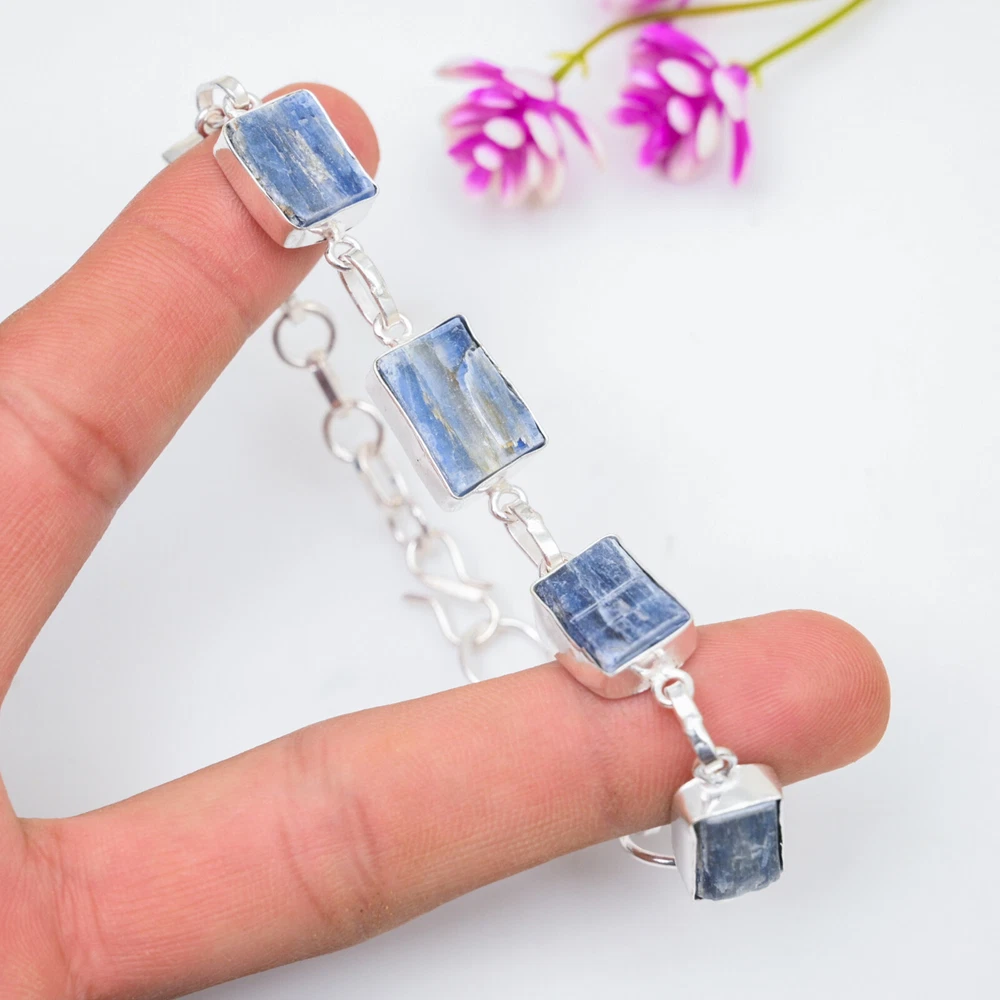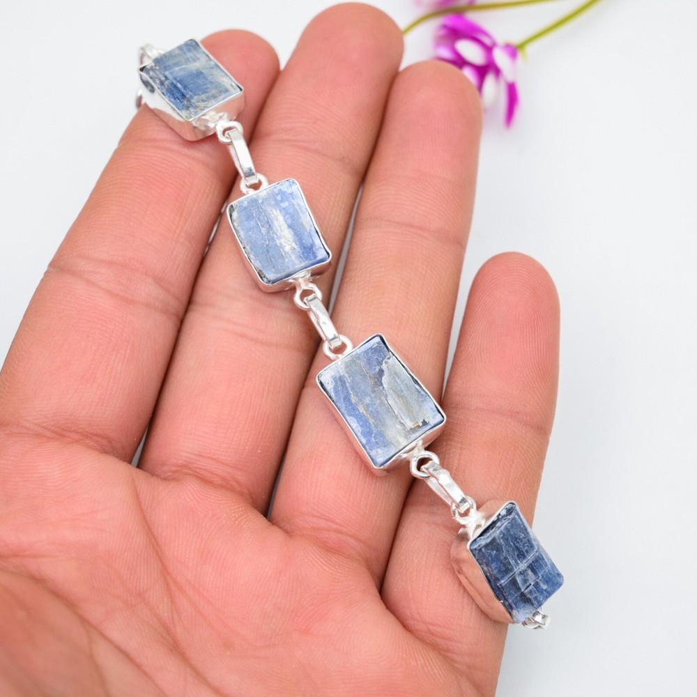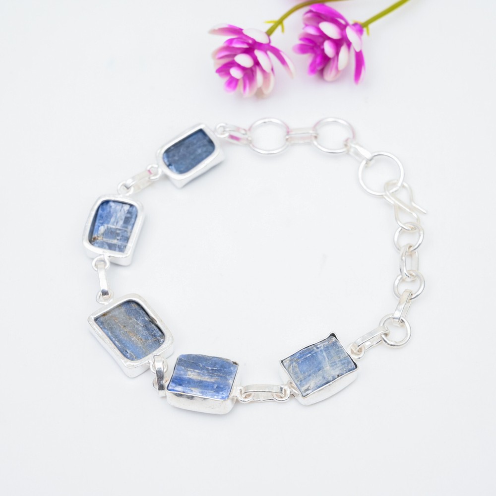 Number of Diamonds:N/ACountry of Origin:IndiaMain Stone Depth:N/ACollection:HandmadeClosure:ToggleCut Grade:ExcellentType:BraceletTotal Carat Weight:10 carat and aboveMain Stone Color:BlueMaterial:GemstoneCertification:N/AMain Stone Width:N/AMain Stone Treatment:Not EnhancedMaterials sourced from:IndiaFeatures:AdjustableBrand:HandmadeItem Length:8 inches with Adjustable ChainMain Stone Length:N/AMetal Purity:925Color:SilverSetting Style:BezelDiamond Color Grade:N/ASecondary Stone:KyaniteMain Stone Shape:BaguetteDiamond Clarity Grade:N/AStyle:ChainChain Type:N/AMain Stone:KyaniteMain Stone Creation:Lab-CreatedCharm Type:Same As PictureNumber of Gemstones:4Shape:Same As PictureMetal:Sterling SilverBase Metal:Sterling SilverColored Diamond Intensity:N/ATheme:Beauty, Bohemian, Ethnic, Halloween, LoveOccasion:Anniversary, Birthday, Christmas, Engagement, Mother's Day, Valentine's Day, Wedding