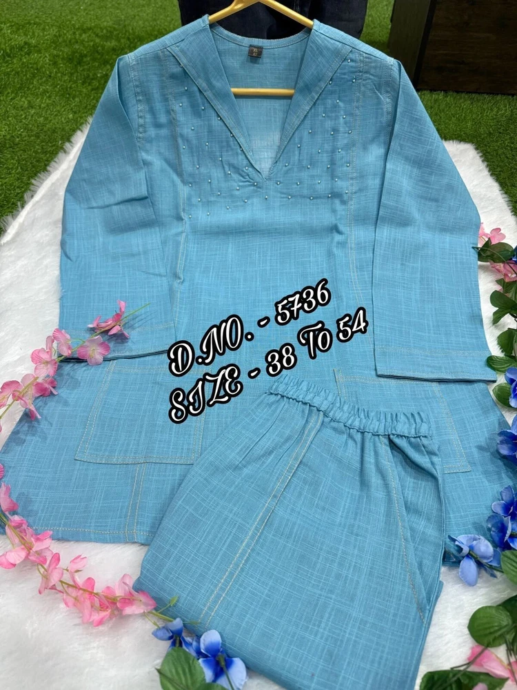 PRODUCT DESCRIPTION π π Beautiful Heavy Cotton Slub / cotton Flex (ΰ€ΰ€Ύΰ€¦ΰ₯) Yarn Dyed & Denim Best Quality fabric Cordset ( Short Length Shirt - 30β) Fulfilled With Machine Katha Work & Full Hand Adda Beads Work On Yoke + Pockets + Heavy Cotton Slub / Cotton Flex (ΰ€ΰ€Ύΰ€¦ΰ₯) Yarn Dyed Denim Fabric Pant With Both Side Pockets π β D.NO. - 5736 π 2 Colours Available π βSize: M/38, L/40, XL/42, XXL/44, XXXL/46, 4XL/48, 5XL/50, 6XL/52, 7XL/54 π€©Price : 799/- Free Shipping (38 to 44 size) π€© π€© Price:- 899/- free shipping ( 46 to 54 size) π€© β Same Day Dispatch βββ π€© Price:- /- free shipping ( 46 to 54 size) π€© β Same Day Dispatch βββ β Same Day Dispatch βββ Enticingly elegant Kurta Pant set will certainly be a perfect paradigm for a classic look. This set is best reflection to your sophistication. A perfect match to twin on any day. Specially designed with Rayon fabric and most subtle colours to scale the decency within yourself. It will be undoubtedly the best choice you will have in your wardrobe poured with comfort, class, elegance and style. Manufacturing, Packaging and Import Info large size dresses, plus size long kurti, large size dresses, plus size long kurti, 3xl 5xl gown, 6xl gown, 7xl gown, big size dress, Kurtas & Kurtis, plus size gown for wedding plus size wedding dress, plus size dress pattern, lingerie plus size, plus size goth clothing, king size comforter, plus size maid, women wedding plus size gown" PAYMENT METHODS We accept Payoneer and the rest other modes of payment are also accepted. It is easy and safe for you to pay by credit cards, debit cards, bank transfers, and Payoneer account balances. Payment should be made within 2 days after the winning of the item. SHIPPING POLICY US shipping - Free Shipping International-Free Shipping Each item is individually packed securely with quality products to help ensure safe and undamaged delivery. We ship within 1 business day after payment is received. Delivery is generally within 10-15 days worldwide after shipping. In rare cases, it makes take up to 2-3 weeks for delivery depending upon the destinations and customs regulations in your country. All packages have a duly filled customs declaration form to avoid any delay in customs. RETURN POLICY Your satisfaction is of the utmost concern to us. Should you need to return an item, you can do so within 30 days of receipt of the item for a full refund. Return shipping charges are not reimbursable. All items must be in their original condition, not worn or altered. Please contact us if you would like to initiate a return, so that we may guide you through the process. We can be reached through the "Ask a Question" link on the listings. FEEDBACK We strive for 100% Customer Satisfaction and we always leave positive feedback to our buyers. Please help us maintain our business and give us a 5-Star rating. If you still think that you still can?t leave a 5-Star across the Board, please email us or call us and we assure you that your issue will be resolved immediately. We believe in solving the issues. Positive feedback represents our service, product quality, and dedication to customer satisfaction. Our future business depends on your satisfaction or positive feedback with a "5-star rating". Thank you !!