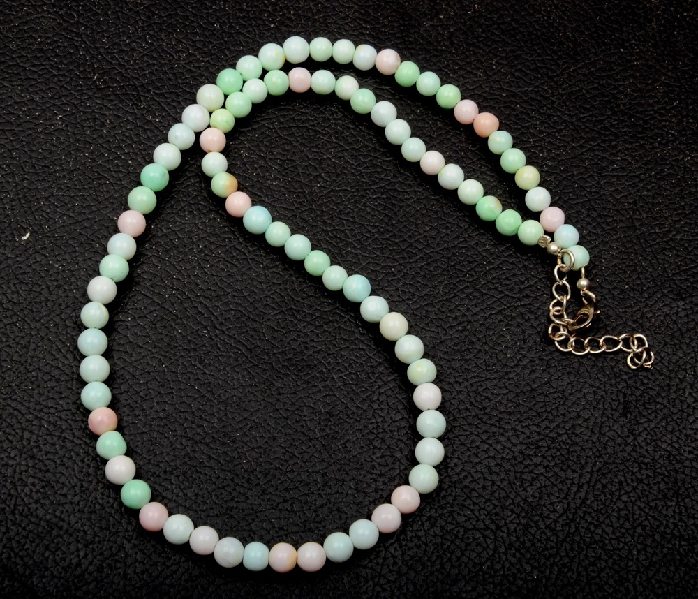 Beautiful Multi Opal Necklace 5 MM Beads 16 Inch Length Adjustable Silver Lock