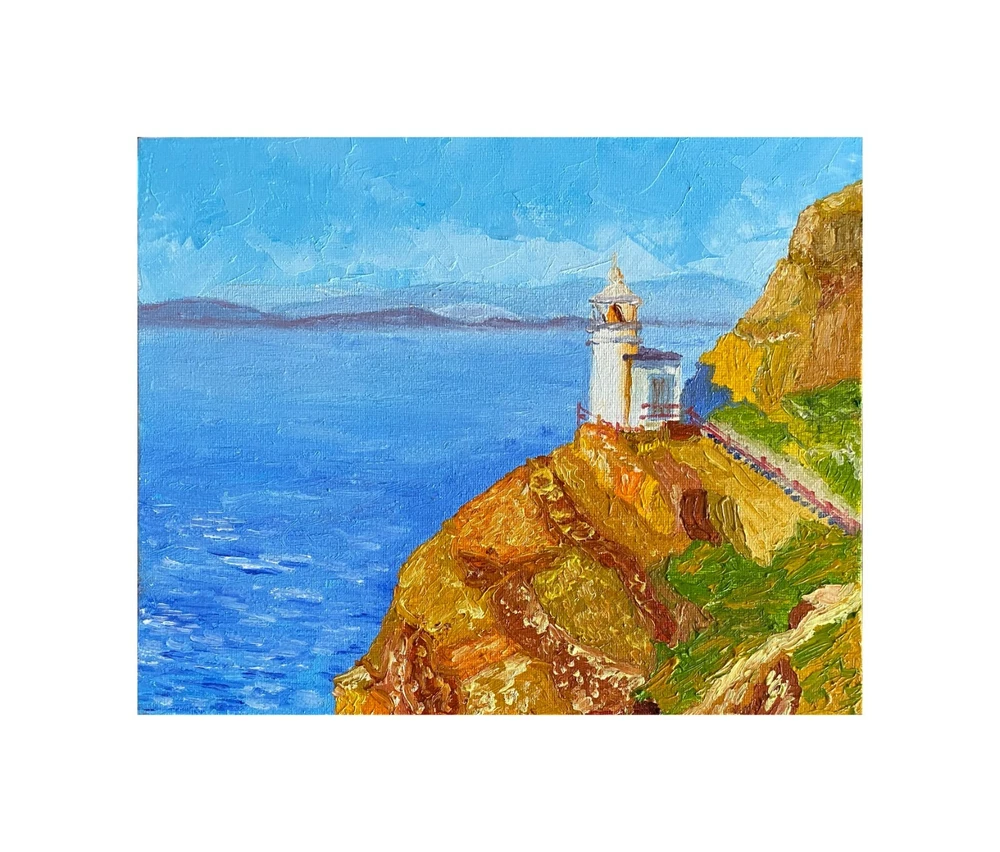 Beautiful Painting on canvas original. Oil. Lighthouse. Seascape Impressionist