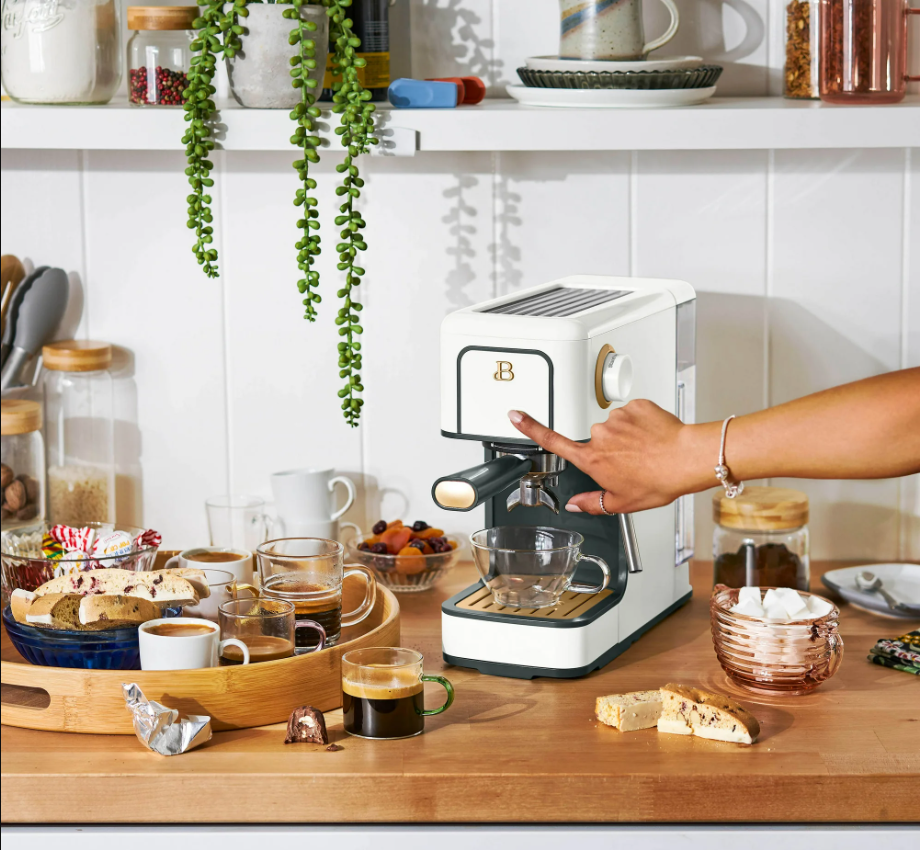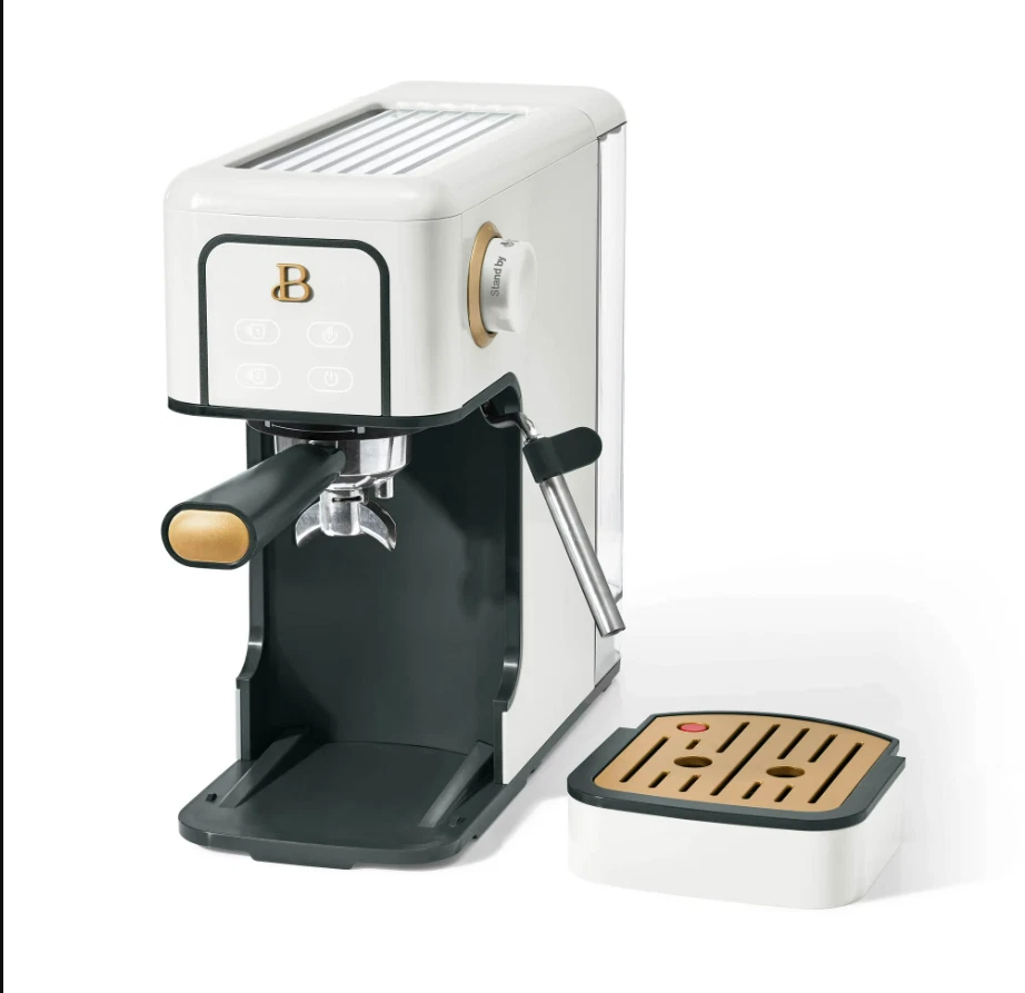 Beautiful Slim Espresso Maker – 20-Bar Pressure – Rose by Drew Barrymore / Measuring spoon is NOT included Compact Design | 20-Bar Italian Pump | Steam Wand | Café-Quality Espresso at Home Brew rich espresso and craft café-style drinks with the Beautiful Slim Espresso Maker , designed in the elegant Rose color. This compact yet powerful machine features a 20-bar Italian pressure pump for deep extraction, smooth crema, and bold espresso flavor. With its modern minimalist profile and slim footprint, it fits beautifully into any kitchen without taking up space. Equipped with a manual steam wand , you can froth milk for lattes, cappuccinos, macchiatos, flat whites, and more. The removable water tank and drip tray make brewing and cleaning simple, while its touch-controlled interface ensures effortless operation. ⭐ Key Features 🔥 20-Bar Italian Pressure Pump Delivers optimal extraction for rich espresso with a smooth crema layer. ☕ Slim, Space-Saving Design A narrow, modern footprint ideal for small kitchens, apartments, dorms, or compact coffee bars. 💨 Integrated Steam Wand Create silky microfoam for lattes, cappuccinos, and specialty drinks. ⏱ Fast Heating System Heats quickly so you can brew espresso in under a minute. 🎛 One-Touch Controls Simple, intuitive buttons for single or double-shot espresso. 🫙 Removable Water Reservoir Easy to refill and clean; supports multiple drinks per fill. 🧼 Easy to Maintain Removable drip tray, portafilter, and steam wand for quick cleanup. 🎨 Premium Rose Finish Modern matte color with signature Beautiful styling. 📏 Specifications Brand: Beautiful Model: Slim Espresso Maker Color: White Pressure: 20 bar Frother: Manual steam wand Water Tank: Removable Shot Sizes: Single / Double Material: Metal + durable plastic Power: 120V Dimensions: Slim, compact countertop size Use For: Espresso, latte, cappuccino, macchiato, iced espresso