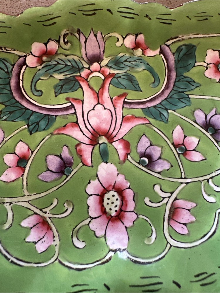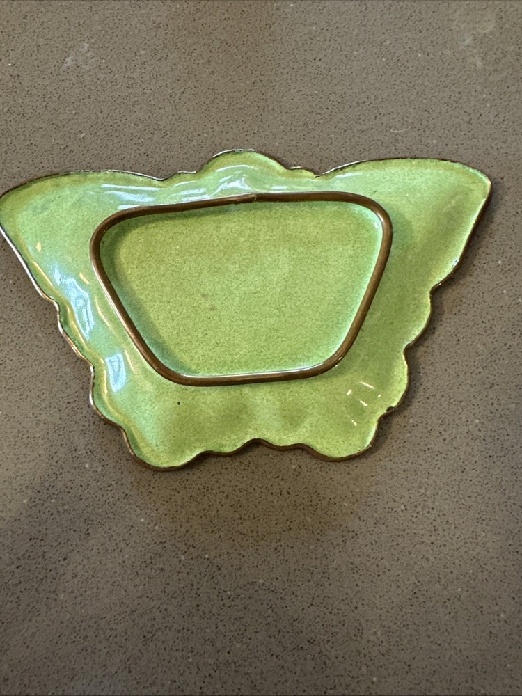This vintage enamel decorated butterfly shape jewel trinket dish is a beautiful and unique piece that adds a touch of bohemian style to any room. The multicolored enamel finish and butterfly shape make it a charming decorative collectible, perfect for storing small trinkets or jewelry. The craftsmanship and attention to detail in this small dish showcase the intricate artistry of the brand Butterfly, adding a whimsical and elegant touch to any space.
