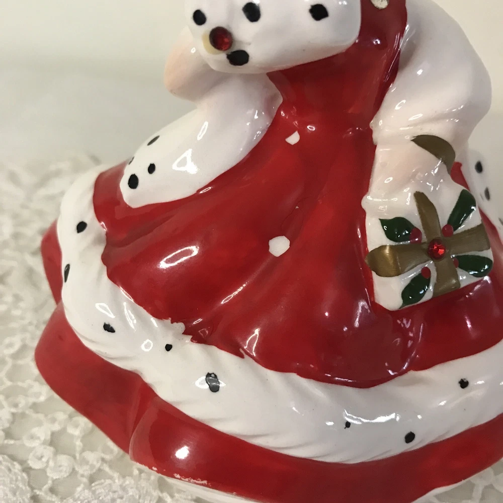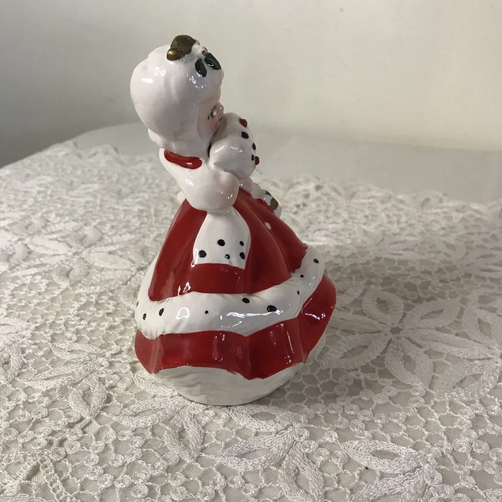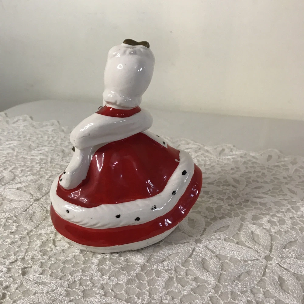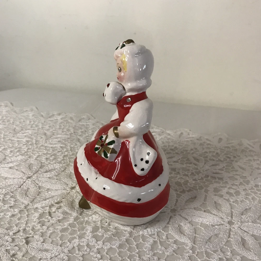 She is beautiful! There are a few missing rhinestones on her dress. Her foot has sone missing paint but it is not chipped. Sone missing red paint in tiny miniature spots bit overall awesome! I will package carefully so she doesn’t get broken or cracked in shipment.
