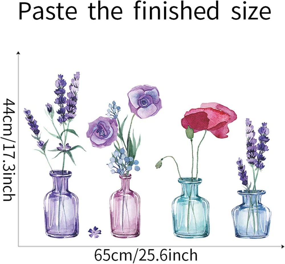 Material: Premium PVC; easy to peel and stick without harming the surface of the wall; removable; waterproof; vibrant and colorful design; can last for long times without peeling, wrinkling or fading if you using it in the correct way Item size: You will receive 1 sheet measuring 35.4'' x 11.8''; finished size of this flower wall sticker is approximately 25.6'' x 17.3'' Versatile Scenario: Suitable for nursery, bedroom, playroom, living room, children's rooms, etc; also can be used on wall, furniture, tiles, mirror, door, cabinets, refrigerator and so on Great value: Bring wall to life with beautiful pattern of nature flower and glass bottle; it can be DIY stickers, allowing you to rearrange creatively with your kids or friends; great gift for your kids, neighbors, or friends Attention: Check the size of this plants wall decal before purchasing; ROFARSO living room wall decals preferably on smooth, clean, dry, dust-free surface with no texture Product Description