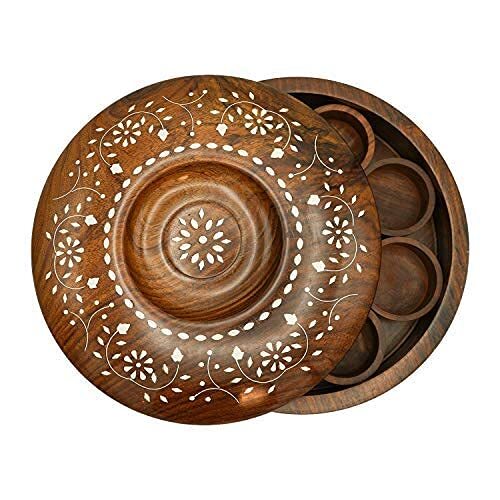 SUPER STRONG AND STURDY BUILT - You will receive a highly durable wooden masala spice box which doesn't break apart easily as we have double nailed each joint for your daily rough & tough usage. MATERIAL AND DESIGN - This sheesham wooden box with 9 sections and a spoon is great to store Indian spices This multipurpose utility box can also be used to store and serve refreshners, dry fruits and keep your knick knacks like jewellery, small items at one place EASY TO USE SPICE BOX - The natural brown color of this multipurpose box enhances it's look and has 9 individually separated compartments. The containers can be used separately to store spices and other uses like for storing dry fruits, keep jewelry, serve fresheners and keep your Nick Knacks. FOOD GRADE WOOD MATERIAL - 100 percent food grade, light weight and easy grip hold. Serve your guests, store leftovers, add beauty to your kitchen and dining area with this wooden handcrafted sheesham wood masala dabba.
