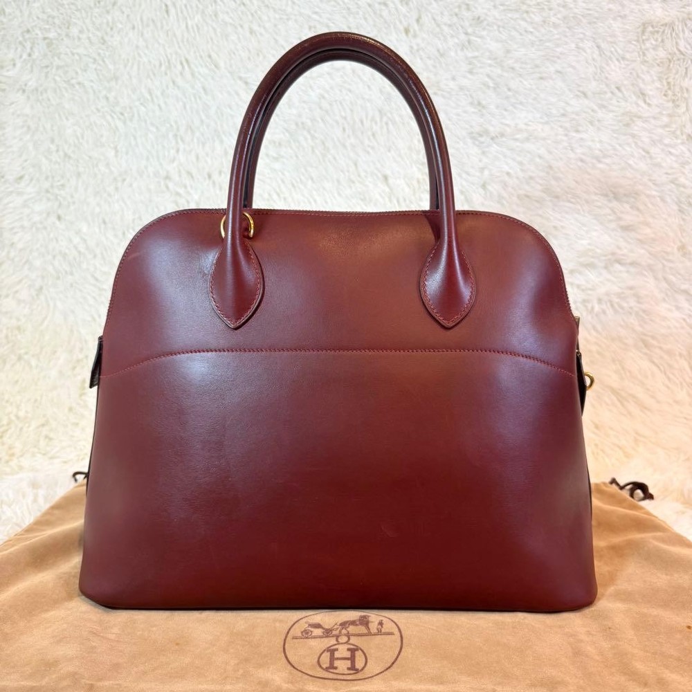 Beautiful item✨Hermes Bolide Box Calf Handbag Rouge Ash Key Features Hermès Handbag - Leather, B Stamp, Includes Dust Bag, Choker, Cadenas, and Keys. Measures 26.5cm x 35cm x 13.5cm. Features some wear, scuffs, handle stickiness, and touch-ups. Authenticity verified from authorized dealer. Item Specifics: Brand: Hermès Type: Handbag Material: Leather Size: 26.5cm (H) x 35cm (W) x 13.5cm (D) Condition: Used, with scratches, handle stickiness, touch-ups, B stamp Specifications Brand HERMES Country Japan Product Description Description Thank you for your interest. This item is not new, but a used item that was given away. Please check the photos for the condition of the item. Please understand that the condition of the item is subjective and the standard of evaluation and feeling may vary from person to person, so please be aware that this is a used item before bidding. Please check the photos for the condition of the item, such as scratches and stains. To prevent problems, please feel free to contact us if you have any questions about the size or other details of the item. We will be happy to adjust the price. We will do our best to ship your order as soon as possible. We will do our best to ship as soon as possible, but there may be delays during the busy harvest season. Remarks All the products we sell are obtained and sold by pawn shops that are authorized brands, so all the products we handle have been authenticated to meet our strict standards for authenticity, so please buy with confidence. Payment Supports managed payments Please pay within 5 days after auction is finished. About Us We are located in Japan. It's our pleasure to make you happy by proposing our recommend item. If you have any questions or request about items, please feel free to ask us. International Buyers - Please Note: -Importduties, taxes, and charges are not included in the item price or shipping charges. These charges are the buyer's responsibility. -Please check with your country's customs office to determine what these additional costs will be prior to bidding/buying. -These charges are normally collected by the delivering freight (shipping) company or when you pick the item up - do not confuse them for additional shipping charges. -We do not mark merchandise values below value or mark items as - gifts - The US and International government regulations prohibit such behavior. Thank you for your understanding