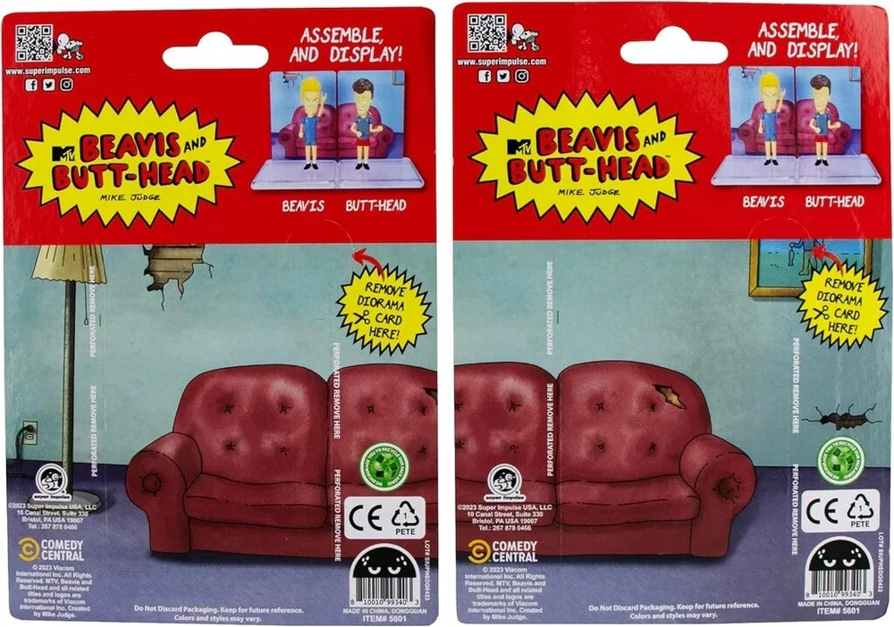 Beavis and Butt-Head 3.75" Action Figures Set of Two + Diorama Super Impulse NEW Beavis and Butt-Head 3.75" Action Figures Set of Two + Diorama Super Impulse NEW Produced by Super Impulse, this features the main characters from the animated TV series Beavis and Butt-Head. The figures are approximately 3.75" tall, have movable arms and a turnable head and include a diorama display that attaches to a display base. We pulled these from a sealed case that we bought direct from Super Impulse and they have been stored in a smoke and pet free environment. We are adding hundreds of new items to our store each month so check back often for additional toys, action figures and other animation merchandise. ADDITIONAL MOVIE AND TV MERCHANDISE Click here MOVIETV for a complete listing of movie and television material that we have available on EBAY You may combine this with our other auctions to save on total shipping costs, but we have to do the calculations as ebay cannot. Buyer pays calculated shipping and handling for postage to a U.S. address which includes delivery confirmation. International shipments and other forms of delivery may be more. We will combine multiple auction wins to help reduce total shipping and handling fees whenever possible. To receive a combined shipping total (combined means reduced, not free) do the following: Click add to cart for the items you want; DO NOT click buy it now; when you have everything you want go to your cart and click the link to ask for total to the top right of your list if you are on a computer; if you are on your phone or a tablet, log in to ebay using a browser window; for Chrome touch the three dots in the lower right hand corner and look for the request stop site option; for Safari touch the AA in the upper left corner and look for the request desktop site option and for Firefox touch the three dots in the upper right hand corner and look for the request desktop site option; once you switch to the desktop site, go back to your cart and the request total from seller option should be visible; we then get that request and combine your orders to reduce the shipping and ebay then sends you a revised invoice to pay. Over 99% of all orders ship within one business day from the date of your payment. Let us know if you have special shipping options or needs. We are open Monday thru Friday (except holidays) from 9 am to 4 pm Eastern time. International buyers are responsible for any duties or customs fees. Please contact them if you feel they have billed you unfairly as we have no control over their assessment. Listing and template services provided by inkFrog