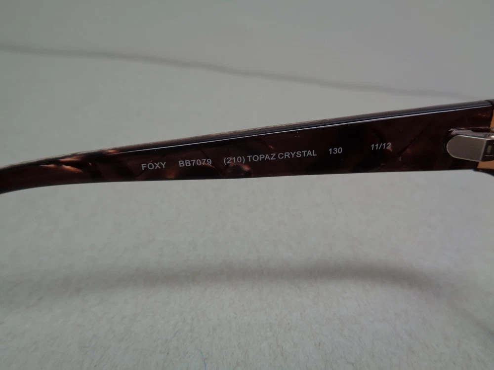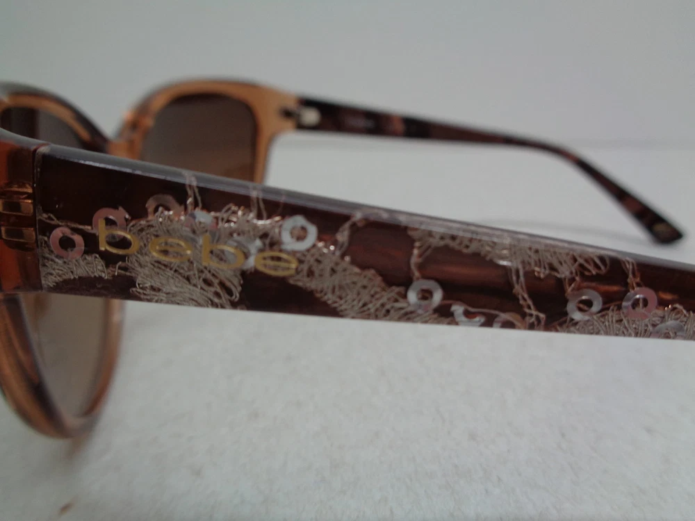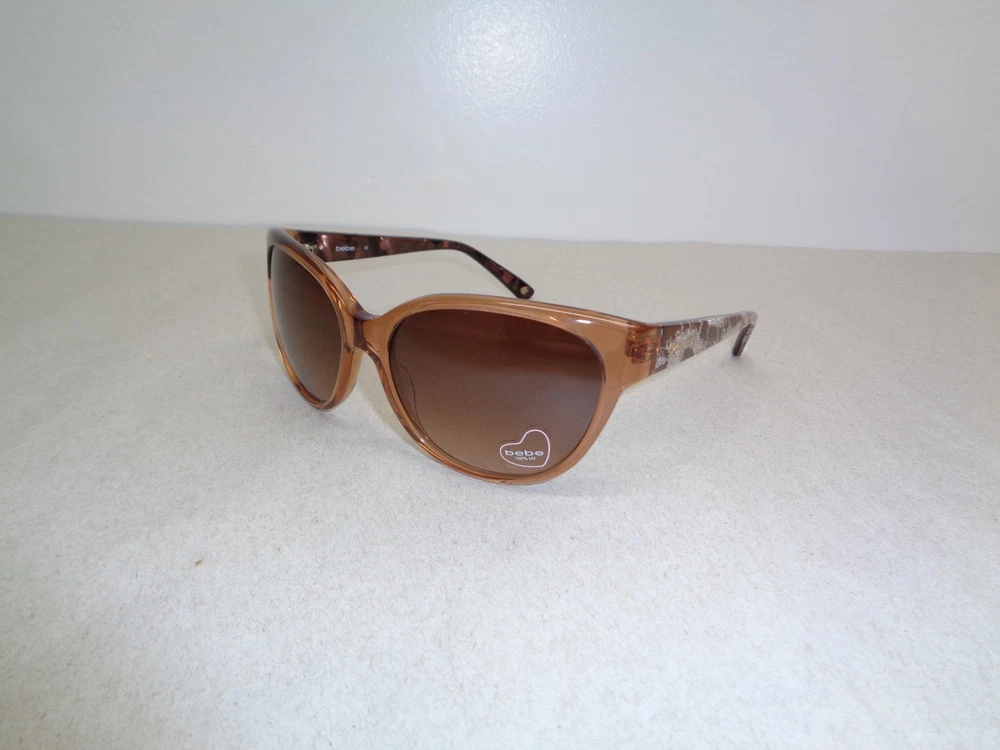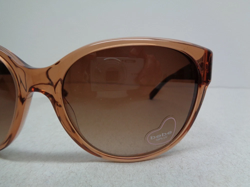 Bebe FOXY BB7079 Topaz Crystal Round Fashion Sunglasses New Womens Eyewear -Style: FOXY, BB7079 -Color: (210) Topaz Crystal -Plastic frame and arms -Brand detail at temples -Integrated nose pads -100% UV gradient protection -Lens width=56 -Bridge width=16 -Arm length=130 -Comes with case in picture
