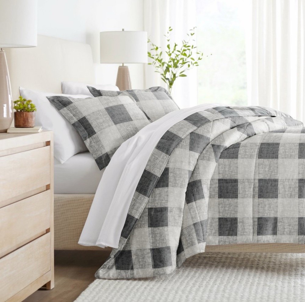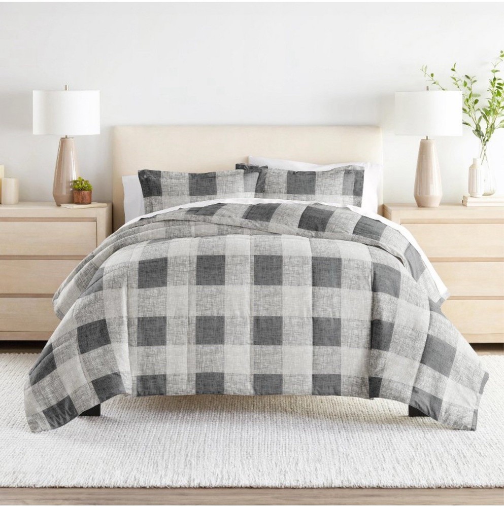 Becky Cameron Reversible Microfiber Gingham Gray Bedding Set Full Queen New