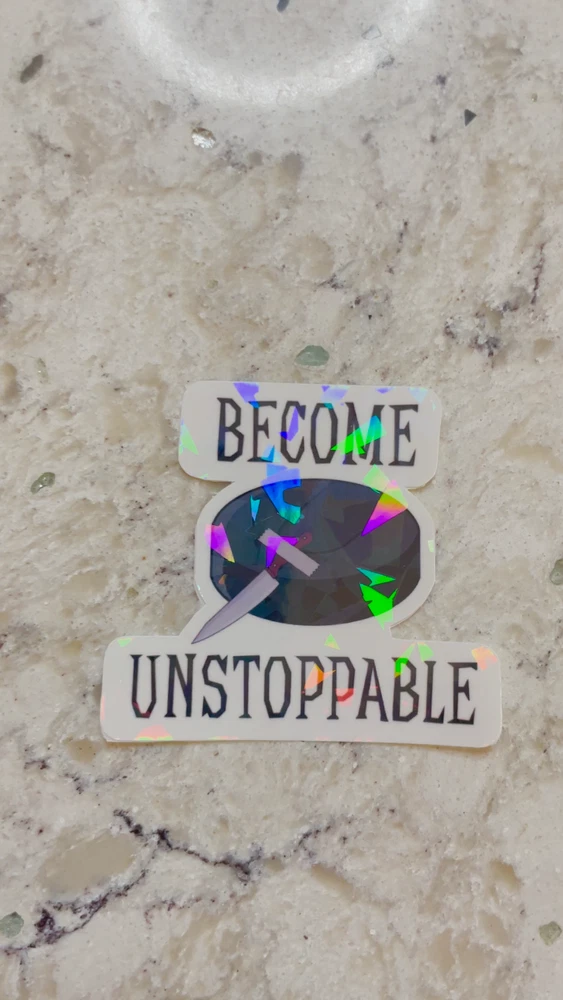 High quality waterproof Become Unstoppable sticker! These are very durable long lasting die cut stickers meaning they are versatile. They can go on laptops, phones, tablets, notebooks, tumblers, mugs, binders, and more! Available in Gloss or Holographic Laminate and in Small, Medium, and Large. Small - 1.4" x 1.2" Medium - 2.3" x 2" Large - 3.4" x 3" Sticker Care Instructions - Make sure to clean surface before placing sticker - Hand wash only, not dishwasher safe - Apply only to smooth surfaces - 1-3 day processing time - Shipping time is usually 1-5 days but varies due to USPS services and shipping procedures - Returns are accepted within 30 days