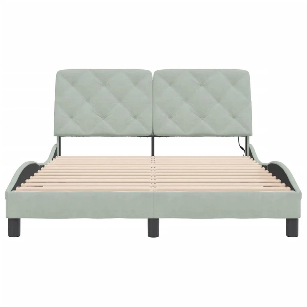 Size: Full Get a better restful night's sleep from this bed frame with LED lights! It makes a welcoming addition to any bedroom. Soft velvet: Velvet is a soft and comfortable fabric that feels nice against the skin. Plywood slats: The plywood slats provide good weight distribution, ensuring that the mattress stays in place with every twist and turn of your body during sleep. Excellent support: The bed header provides you with excellent back support while you're sitting up in bed to read or watch TV. Colorful LED strip: Bring playfulness into darkness with colorful LED lights! The hook and loop fasteners on the back of the headboard cushion can be used to secure the LED lights. Waved side design: The waved look of the bed frame is stylish and sophisticated, adding a modern and elegant touch to your decor, making it the focal point of your bedroom. Good to know: A mattress is not included with this bed. We do offer a various selection of mattresses. You can check our shop for a matching mattress. The product has a USB connector that requires a certified 5V USB power source (not included). Bed frame: Color: Light gray Material: Velvet (100% polyester), metal, solid pine wood, plywood Overall dimensions: 81.9" x 55.9" x 29.3" (L x W x H) Suitable mattress size: 53.9" x 74.8" (W x L) Full (mattress not included) Range name: Piran Assembly required: Yes Headboard cushion: Color: Light gray Material: Velvet (100% polyester) Filling material: Foam Dimensions: 54.7" x 2.4" x 18.9" (L x W x H) Suitable mattress width: 53.9" LED strip: Length: 21.7" Voltage: DC 5 V USB cable length: 55.1" Power cable length: 11.8" IP rating: IP65 Delivery contains: 1 x Bed frame 1 x Headboard cushion 2 x LED strip California Proposition 65
