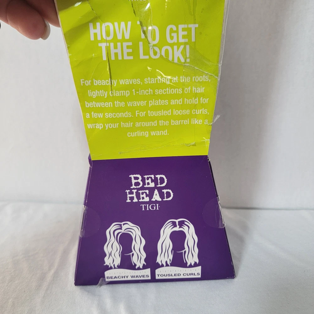 Bed Head Swerve Curve Hair Waver and Wand | 2 Tools in 1, Beachy Waves, Tousled Curls new with open box. scroll photos for in real life photos! Description: Beachy waves or loose tousled Curls? Why choose when you can have both! The Swerve and curve Waver and wand in 1 is flexible and customizable, so you can switch up your hairstyle as you please, using one single tool. This unique styling Iron can be used as a traditional Waver to create Chill, beachy waves or as a curling Wand to create loose, tousled Curls. Tourmaline ceramic technology reduces frizz and adds Mega Shine, while instant heat recovery ensures your results are fab throughout. The Waver and wand in 1 is down for whatever, whenever with a worldwide dual voltage feature allows you to pack it anywhere you go. How to use: For beachy waves, starting at the roots, lightly Clamp a 1-inch section of hair between the Waver plates and hold for a few seconds. For tousled loose curls, lock plates together and wrap hair around the barrel like a curling Wand. Tangle-free Swivel Cord. Features: CUSTOM STYLING: Beachy waves or tousled curls your choice theres no limit to your style. TOURMALINE TECHNOLOGY: Boosts shine and helps reduce damage and frizz from over-styling. ALL HAIR TYPES: Rotating Dial with multiple heat settings. Up to 400 F for styling magic on all hair types. TRAVEL READY: 6 ft tangle free swivel cord and universal dual voltage. Instant heat recovery for consistent results. GET THE LOOK: Take control open plates to use as a tradition waver or lock plates closed and wrap hair around the barrel like a curling wand. IMPORTANT: Select the LOWEST heat setting and test in one small section of hair for 5 to 8 seconds. If you want to use a higher setting, be sure to GRADUALLY increase the temperature. Product Details: Product Benefits: Curling Shape: Barrel Brand: Bed Head Hair Type: Curly Material: Ceramic Product Dimensions ‏ : ‎ 3 x 5.4 x 15.3 inches; 1 Pounds Item model number ‏ : ‎ BH361 UPC ‏ : ‎ Manufacturer ‏ : ‎ Helen of Troy Country of Origin ‏ : ‎ China