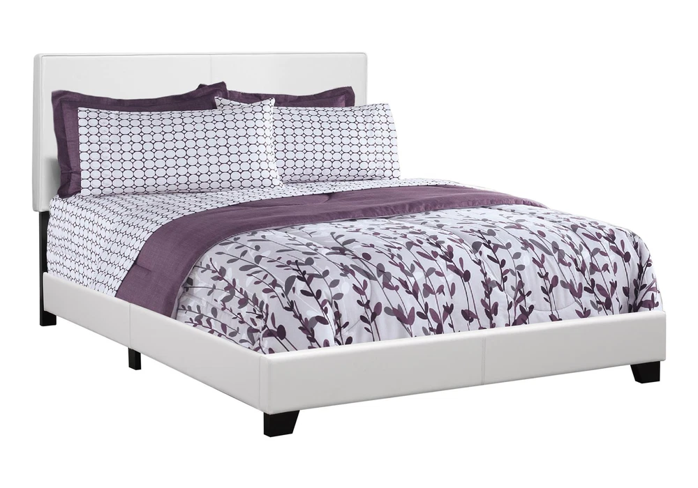 Bed, Queen Size, Bedroom, Upholstered, White Leather Look, Transitional