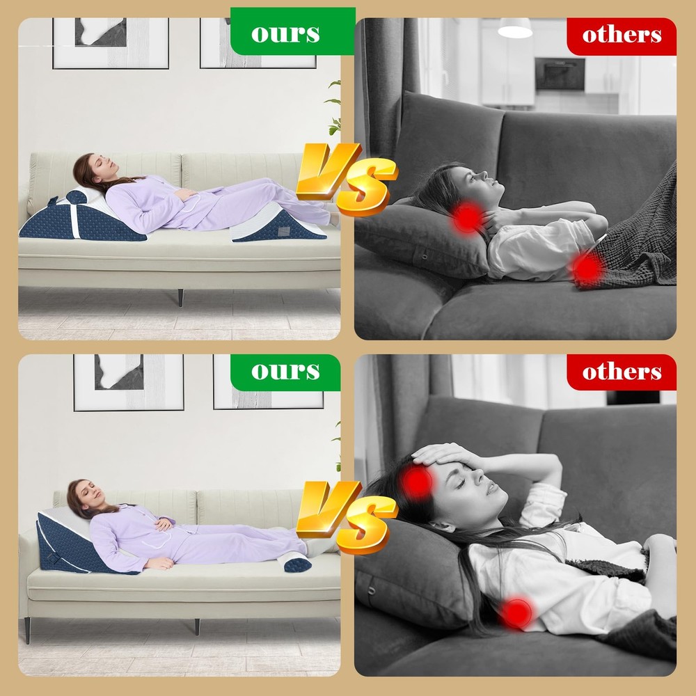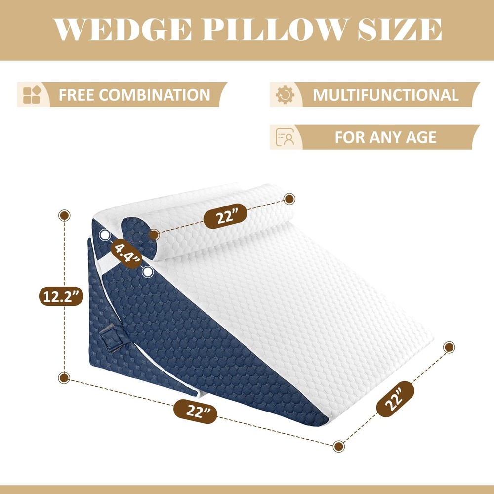 Bed Wedge Pillow for Sleeping, Adjustable Wedge Pillow Set for After Surgery, Elevated Triangle Pillow for Acid Reflux and Back Pain , Post Surgery, Snoring, Back Support Friendly-Design for Back Pain : Our Bed wedge pillow height can be from 7 inches to 12 ing to provide you with more comfortable support. Supportive and elevated post-surgery wedge pillow help you reduce snoring, relieve back, leg pain, acid reflux and breathing issues, improving blood circulation and . Our orthopedic wedge pillow is perfect for after surgery and sleep apnea, providing more comfortable night's sleep for you Bed Wedge Pillow Set for Post Surgery: Our ergonomic wedge pillow is made of high quality foam, comfortable and breathable, skin-friendly fabric, the Wedge Pillow for Sleep is CertiPUR certified in the USA and OEKO-TEX certified, safe and hypoallergenic. Our bed wedge pillow is design supports various uses – from elevated back support for sleeping, reading or working, to a gentle slope for sleep, post-surgery discomfort Removable Machine Washable Pillow Cover: Our bed wedge pillow cover is very comfortable and skin-friendly, and it's thick and durable. The removable cover with a zipper is machine washable for easy maintenance. Wedge pillow set elasticity is very strong and strong and retains its shape after long term use. At the same time, the wedge pillow set hugs the curves of your body and provides excellent support for your neck, back and shoulders Multi-Functional Bed Wedge Pillow Set: Our triangle pillow wedge set is more than just a wedge pillow—it also functions as a bed wedge pillow for headboard. Perfect for daily rest and relaxation, especially during post-surgery recovery. Whether you're lying down or sitting up in bed, reading, working, studying, or watching TV on the sofa, it provides excellent support. It’s also ideal for pregnancy and postpartum comfort Perfect Gift Idea: If you or lover struggles to sleep at night, this wedge pillow for sleeping is a good choice for you, it can help you solve the problem. Our wedge pillow set is able to use it for various body areas like the neck, back, leg, knee, head,shoulder,Provide enough support for all parts of your body to enjoy a comfortable life.