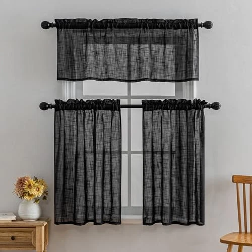 Return Policy Fast Delivery Trusted seller Beda Home Linen Textured Curtain Panels for Kitchen Living Room; Light Filtering Rustic Short Panels for Small Windows Bedroom/Bathroom/Basement Privacy Added Rod Pocket Design (Black, 36x36-2PCs) Product Description Material: Curtains are made of linen blend polyester with soft touch. Functions: Beda Home linen texture panels can block some of the sunlight to create a private view and help with energy saving. Unlike normal sheer, the line weave makes curtains more draped and aesthetic. The fabric is formaldehyde-free, and safe to kids. Standard Size: Each package include 2 piece panels with 36 inch width by 36 inch length(Measurement on actual product may be a little off due to pure hand make); constructed with 1.5” header and 2.5” rod pocket, and it suits perfectly for most rods. Very easy to install. Wild Usage: Linen texture panels gives a soft and hazy vision. Best suit for kitchen, living room, bedroom, basement, travel trailer and more. Adding a light, airy, breathable, and privacy look to your home decor. Easy wash instruction: Machine wash in cold water with like colors. Do not bleach, tumble dry low. Iron on lowest setting when is necessary. Shipping Returns Payment Shipping Shipping is FREE to all addresses other than APO/PO boxes in the lower 48 states. All our stock ships from US-based warehouses. Shipped via USPS or UPS (depending on location and package weight) Unless stated otherwise, all orders will ship within 24-72 hours of your payment being processed. Check our feedback to see the great reviews of FAST shipping we offer. Returns Seller does not accept returns Payment We currently accept payment via eBay managed payments only. Once payment is cleared, we will dispatch your shipment within 1-3 business days. Please refer to the "Shipping" tab for more information regarding shipping speed to your destination.