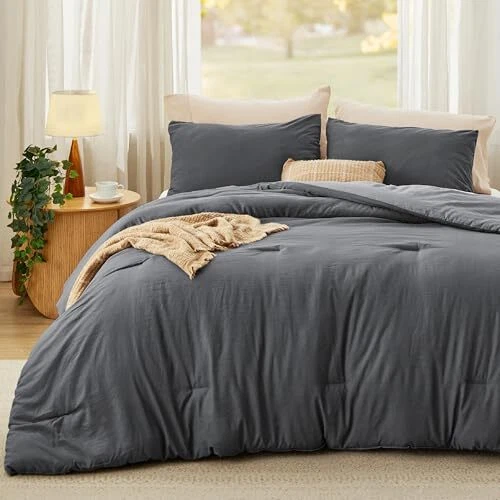 Return Policy Fast Delivery Trusted seller Bedding Comforter Sets Queen, Reversible Grey Prewashed Bed Comforter for All Seasons, 3 Pieces Warm Soft Bed Set, 1 Lightweight Comforter (90"x90") and 2 Pillowcases (20"x26") Product Description Extra Soft: This prewashed comforter is delightfully soft and gentle on the skin. Its cotton-like texture delivers a supremely cozy slumber. Long-Lasting: This queen comforter for holiday is designed with excellent wear resistance, and can withstand washes without pilling or deforming. Subtle Elegance: These reversible bedding comforter sets come in a wide range of elegant hues with a complementing secondary color on the reverse side, instantly giving your space a makeover. Safe Material: This fluffy comforter is Standard 100 by OEKO-TEX certified for meeting the highest testing criteria for harmful chemicals and has been found harmless for humans. Gift your loved ones with coziness that is also safe. Easy Care: The comforter set is machine-washable and easy to maintain. Simply machine wash in cold water on gentle cycles and tumble dry low for a like-new restoration. Shipping Returns Payment Shipping Shipping is FREE to all addresses other than APO/PO boxes in the lower 48 states. All our stock ships from US-based warehouses. Shipped via USPS or UPS (depending on location and package weight) Unless stated otherwise, all orders will ship within 24-72 hours of your payment being processed. Check our feedback to see the great reviews of FAST shipping we offer. Returns Seller does not accept returns Payment We currently accept payment via eBay managed payments only. Once payment is cleared, we will dispatch your shipment within 1-3 business days. Please refer to the "Shipping" tab for more information regarding shipping speed to your destination.