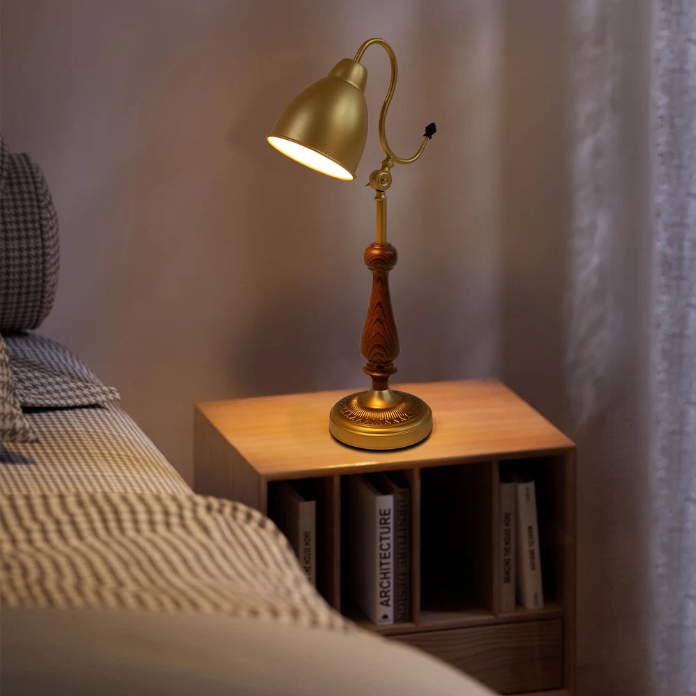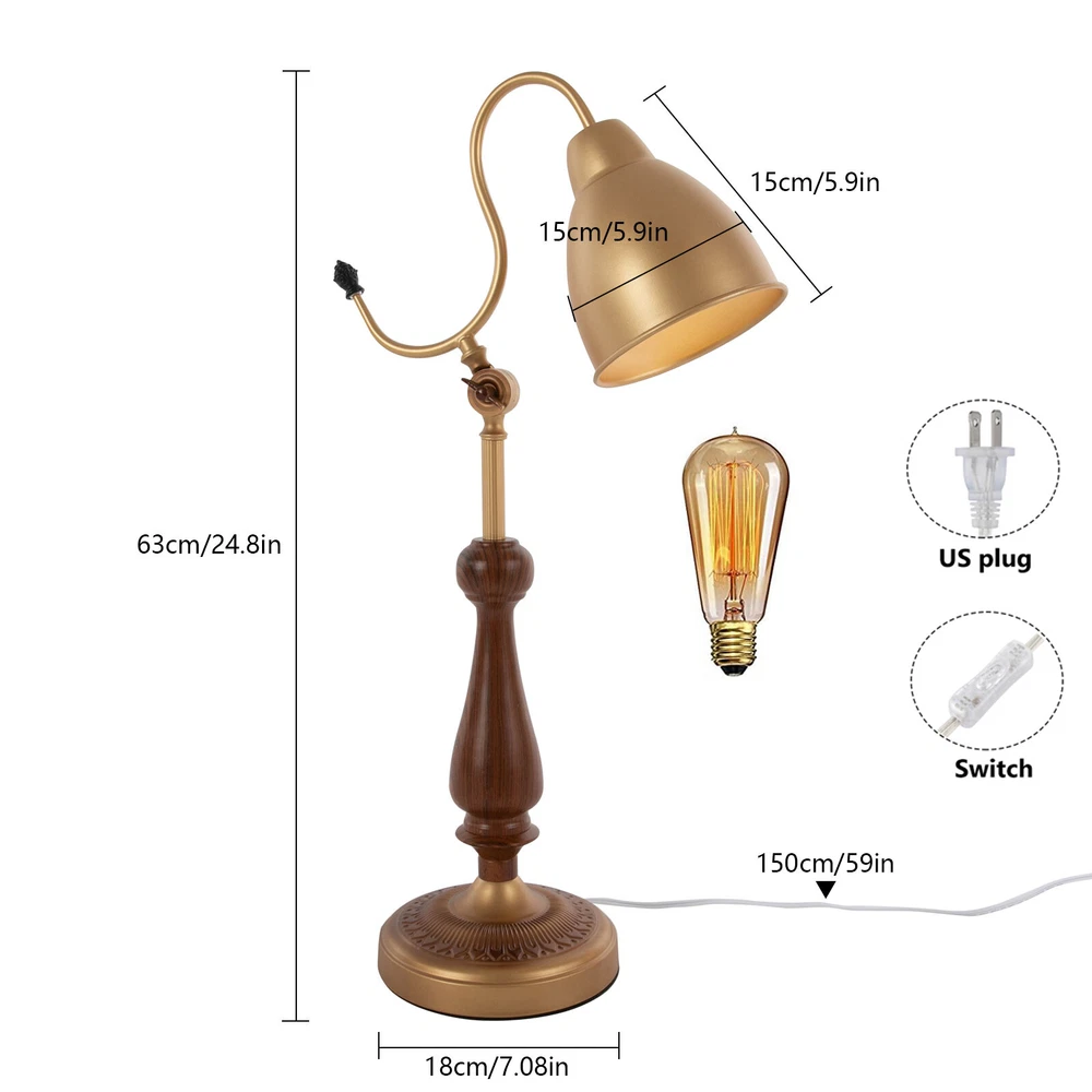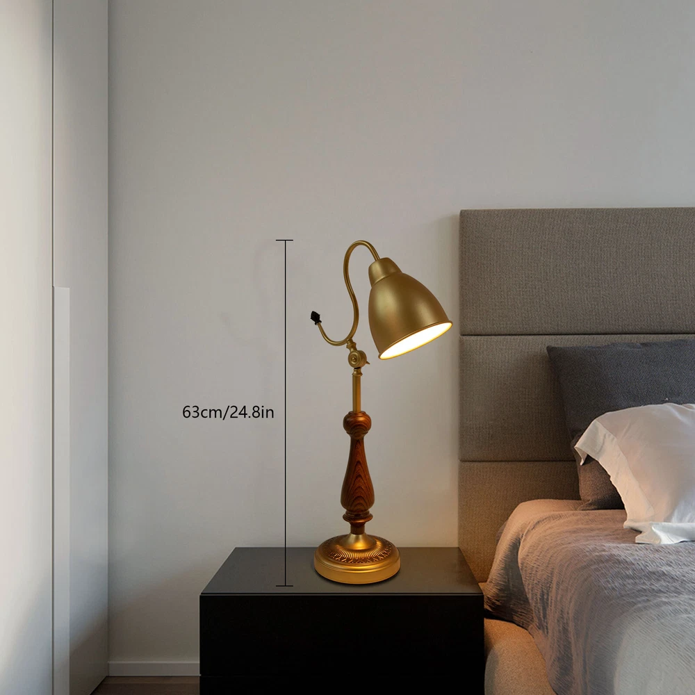 Bedside Table Lamp, Bedroom Desk Light Desktop Lamp, Tabletop Desk Lamp Gold Description This durable table lamp will be your excellent nightly reading and sleeping companion! With its golden body, it can provide you with bright light while showing its elegance. It is not only a practical home lighting tool but also a piece of art to decorate your life and light up your space, adding a unique and elegant charm to your home environment. Key Features Build to Last: Made of iron, walnut wood, and copper using a spray painting process, this product is wear-resistant, corrosion-resistant, and durable, ensuring your long-term use. Elegant Appearance: The golden color tone, exquisitely carved base, and smooth lines give this product an elegant appearance, making it an excellent decoration in your room. Warm Atmosphere: The E26 light source (not included) can emit soft light through the lampshade, warmly accompanying you every night. Easy to Use: The 4.92ft power cord with a switch design facilitates your daily use and allows you to use this table lamp without worrying about the distance. Protective Package: To prevent the product from being damaged during transportation, we packed it with foam to protect your products to the maximum extent possible. Simple Clean-up: With a simple structure and a smooth surface, you only need to clean this product with a towel when dust accumulates. Ideal Gift: The product combines practicality and beauty, making it ideal for housewarming or birthday gifts for your family, loved ones, friends, and children. Customer Service: We aim to provide quality products and services. If you have any problems, please feel free to contact us. We will reply and solve the problem for you as soon as possible. Details Sturdy Base: The lamp base (7.08" in diameter) with an anti-slip mat improves the stability of this product without easily shaking, so you can use it confidently. Smooth Edges: The smooth and burr-free edges enhance the beauty of the product and better care for your skin when using and cleaning it. Application With a lighting area of 53.82 ft², it is suitable for studies, living rooms, bedrooms, hotels, cafes, children's rooms, desks, office desks, and other indoor places. Specifications Color: Gold Lamp Type: Table Lamp Material: Iron, Copper, Walnut Wood Process: Spray Painting Assembly Required: Yes Mount Type: Tabletop Indoor/Outdoor Usage: Indoor Power Source: Corded Electric Plug Type: US Standard Efficiency: E Light Source: 1*E26 (Not Included) Voltage: 110V Max. Bulb Power: 40W Power Cord Length: 1.5m/4.92ft Illuminated Area: 5m²/53.82ft² Lampshade Diameter: 15cm/5.9in Product Height: 63cm/24.8in Base Diameter: 18cm/7.08in Package Included 1* Table Lamp Notes Please check the size carefully before ordering. Please note that this product does not include a light bulb. You will need to purchase an E26 light bulb yourself. Please use the lamp within the applicable voltage range and clean lamps regularly. Please cut off the power supply when you clean the light or replace light bulbs. Please allow the slight color difference caused by the shooting light and 1-3cm error due to manual measurement, and make sure you do not mind before you order. Payment Delivery details Terms of sales About us Contact us Payment We accept ebay payment 。 Fees such as import duties, taxes are not included in the item price or shipping costs. These charges are the buyer's responsibility. Delivery details Shipping: 2-9 working days to: USA Terms of sales We maintain high standards of excellence and strive for hundred percent customer satisfaction. Feedback is very important to us. We hope that you contact us immediately before you give neutral or negative feedback, so that we can address your concerns. It is impossible to address issues if we do not know about them! About us Your satis faction is our ultimate goal. We work hard to earn your trust and future business. Our certified technicians have tested each item before shipping. The unit comes with 1 year limited warranty on all manufacturing defects. a) If you receive a defective item, you may return it or ask for a discount. Please contact us within 14 days after you receive the package. b) What you returned must be intact and in its original packaging as re? u. Customer is responsible for shipping costs of the returned item. c) We will cover the cost of shipping back t with the shipping rate indicated in the registration page. We will send you a new unit or refund the full payment you paid. Thank you. Contact us Business Hour Business Hour: Monday To Friday: 8:30 AM to 5:00 PM (Beijing China time) Due to time zones, our reply to your questions may not be immediately. But within above working time, we will reply your email within 24 hours. If it's non-workdays, please kindly be patient and wait till Monday. Please contact us with ebay message. Please feel free to contact us if you have any questions. Monday To Friday: 8:30 AM to 5:00 PM (Beijing China time) Due to time zones, our reply to your questions may not be immediately. But within above working time, we will reply your email within 24 hours. If it's non-workdays, please kindly be patient and wait till Monday. Please contact us with ebay message. Please feel free to contact us if you have any questions.