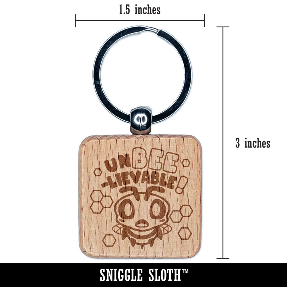 Bee Engraved Wooden Square Keychain Tag Charm for Nature Lovers