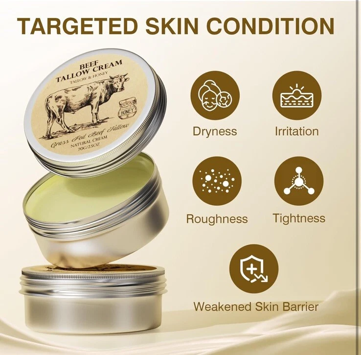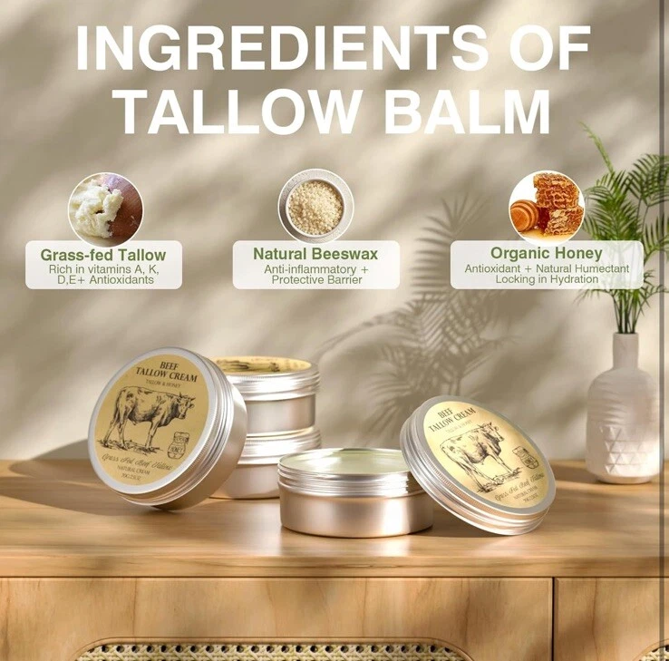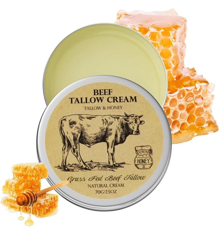 Beef Tallow for Skin, Tallow and Honey Balm,Tallow Face Moisturizer, Natural Organic Grass-Fed Beef Tallow Balm with Raw Honey Moisturizing Cream for Body Lotion Skin Care for Sensitive Skin
